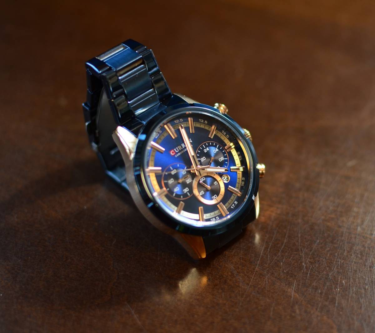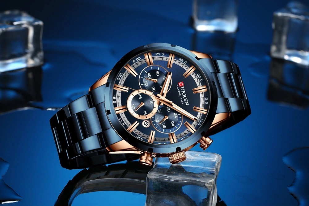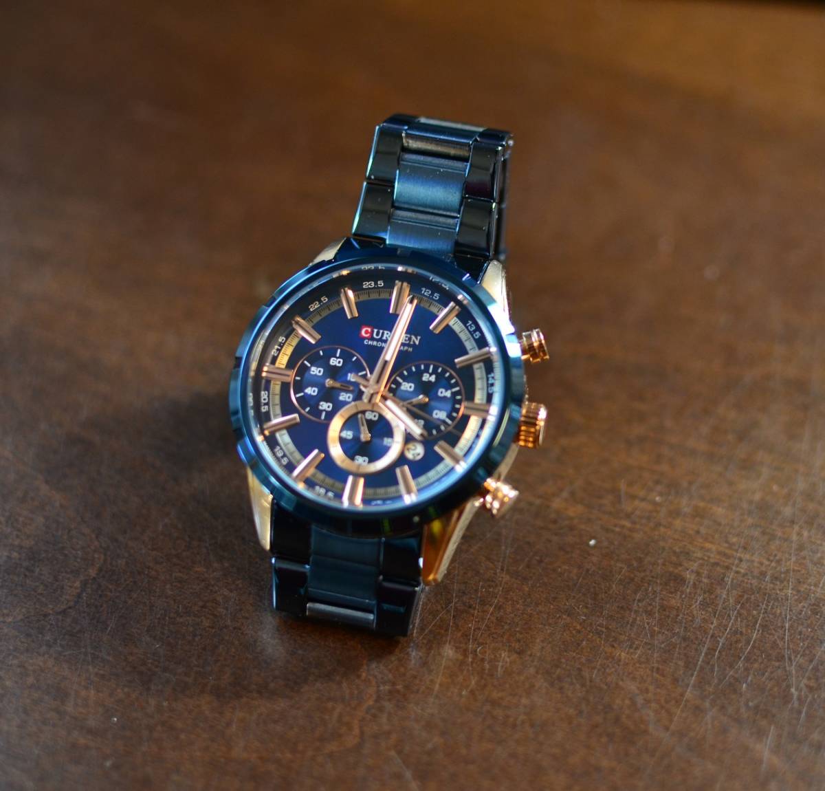 ダークブルーを基調とした、クールな色合いと洗練されたデザインを兼ね備えた、Curren の腕時計になります。このお値段で、この品質、数万円の腕時計と比べても、全く見劣りしない、存在感のある腕時計です。今お持ちの腕時計に加えて、あなたのオシャレアイテムとして大活躍することでしょう。 メーカー:Curren Model Number: 8355 ムーブメント:クオーツ ベルト素材:ステンレス ケース素材:合金 ベルト幅:24mm ベルト全長:240mm ケース直径:47mm ケース厚み:13mm 重量:140g 生活防水機能 電池:SR920SW *クロノグラフは作動はしますが、正確に時間を測定する目的というよりも、 飾り程度のものだとお考え下さい。 即ご購入、歓迎いたします。 ご購入前、プロフのご確認もよろしくお願いいたします。 どの商品も発送前に必ず動作等の確認を行っております。可能な限り不備のないことをチェックした上で発送しておりますが、万が一何か不備等の問題がある場合には、ご評価して頂く前にお知らせください。ご満足いただけるように、誠意を持ってご対応いたします。
