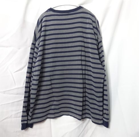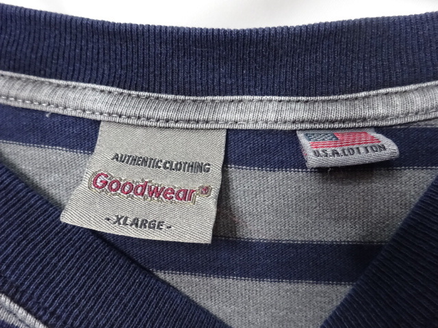 Goodwear グッドウェア サイズXL 後染めボーダー柄 ロングスリーブTシャツ 丸首 グレー ネイビー 長袖Tシャツ 收藏