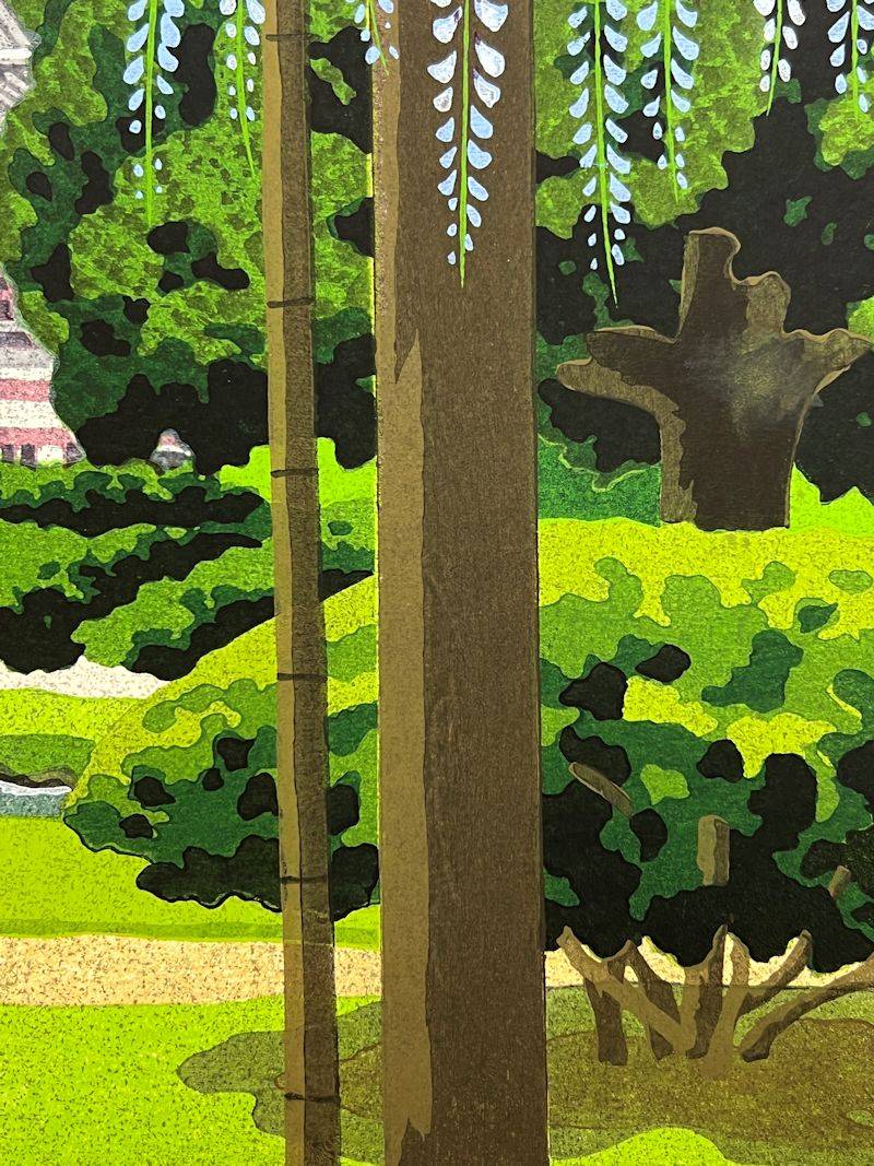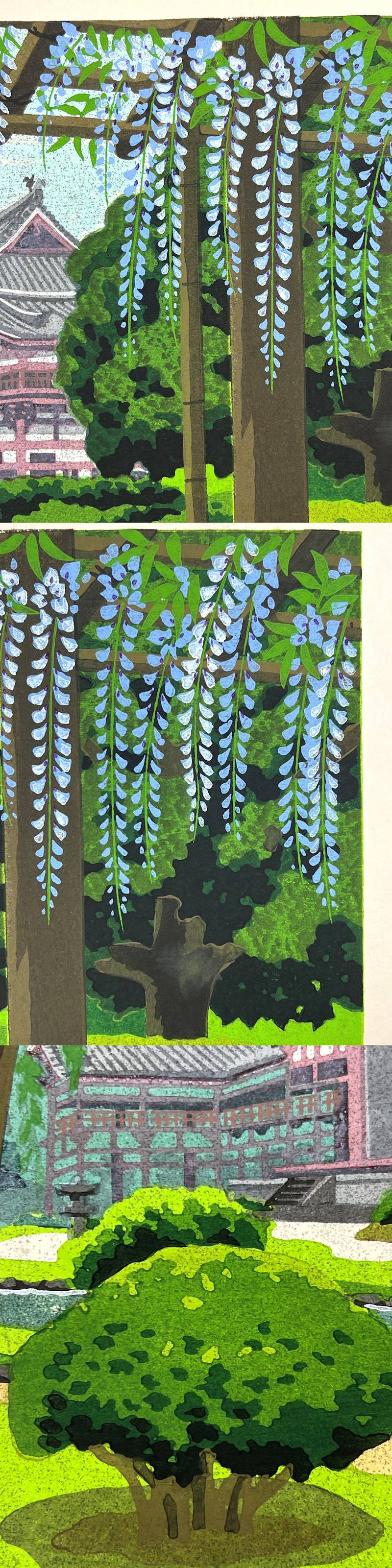 【FCP】 真作保証 井堂雅夫 限定木版画27x38.2cm 「平等院・藤」 1993年作 近畿版ふるさと切手原画制作 NHK教育テレビ出演 h 收藏