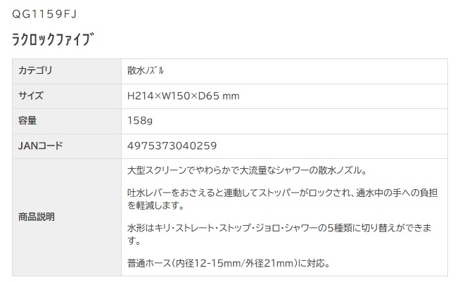 タカギ QG1159FJ ラクロックファイブ TAKAGI 040259 收藏