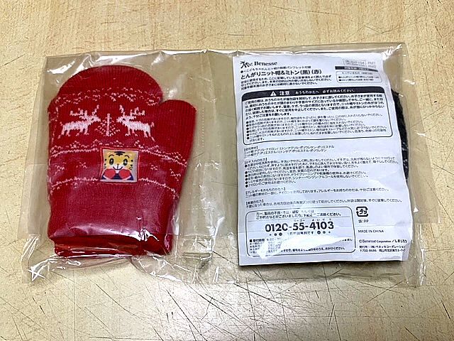 新品 ミトン手袋 2点 幼児用 赤黒 ベネッセ子供チャレンジパンフレット付録 收藏