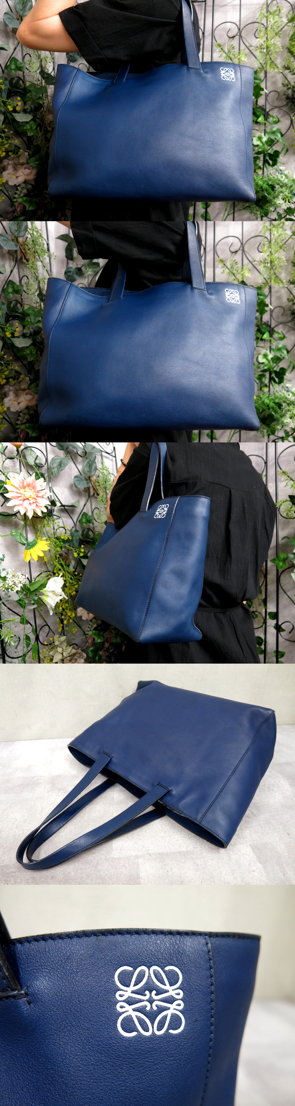 ●超美品●LOEWE ロエベ●アナグラム●カーフ レザー 本革●トート バッグ●ブルー●シルバー金具●B5 収納●書類 かばん●肩掛け●Js57521 收藏