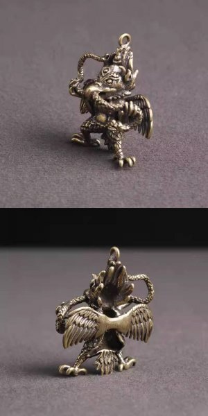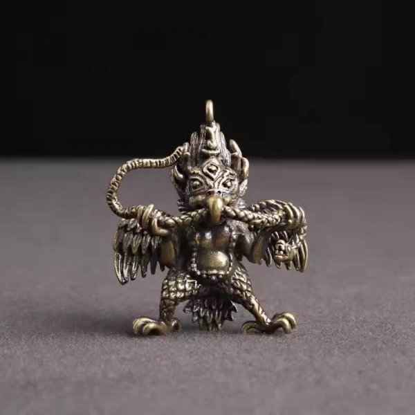 AVALO202505250933-2 古品楼閣 純銅製のネパール密教の金翅大鵬鳥 キーホルダー 收藏