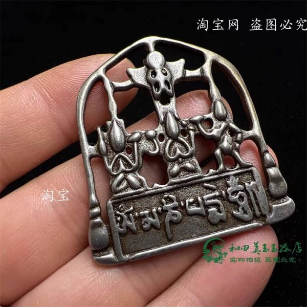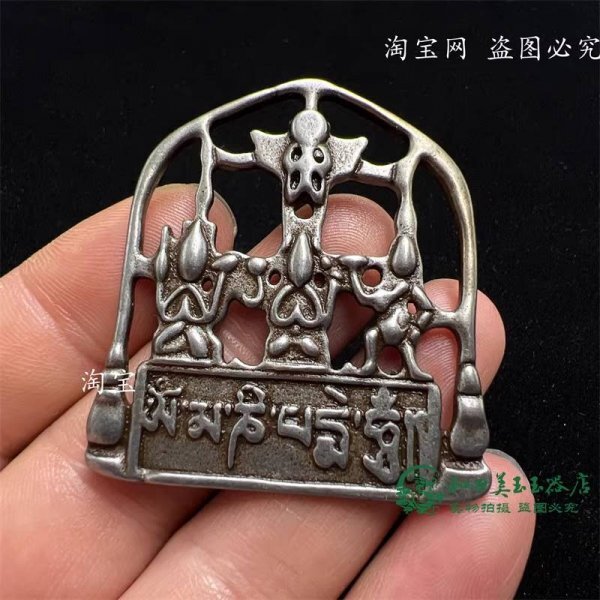 AVALO202500306-25 特別価格 [宇宙からの贈り物]希少品 チベット伝統で作られた古天鉄(三体の守護神)、古い隕石鉄の胸甲形のペンダント 收藏