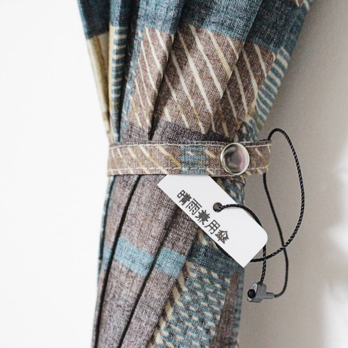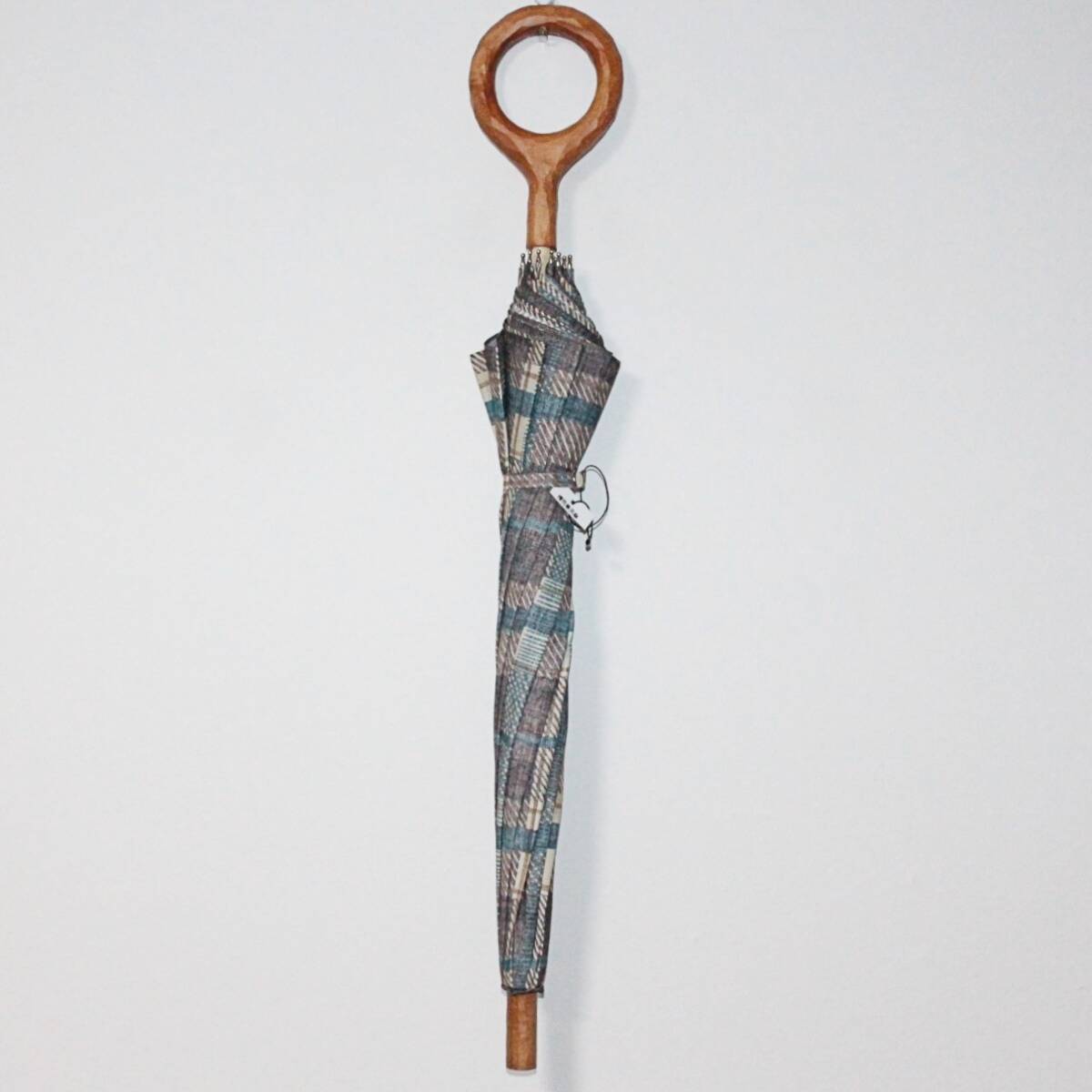 新品 ソシエレノ 木製リングハンドル オリジナルチェック柄 UVカット加工 晴雨兼用パラソル 茶系&青 K5302 收藏