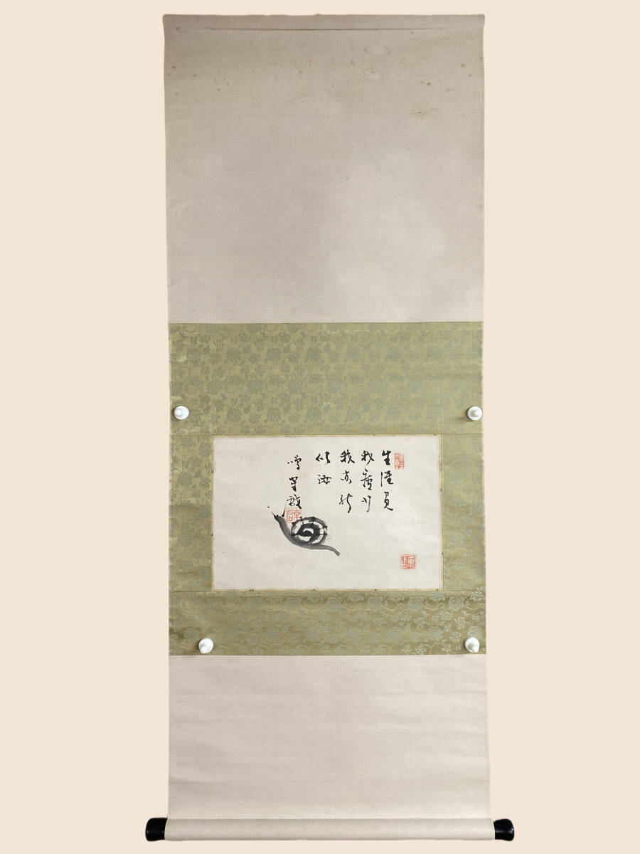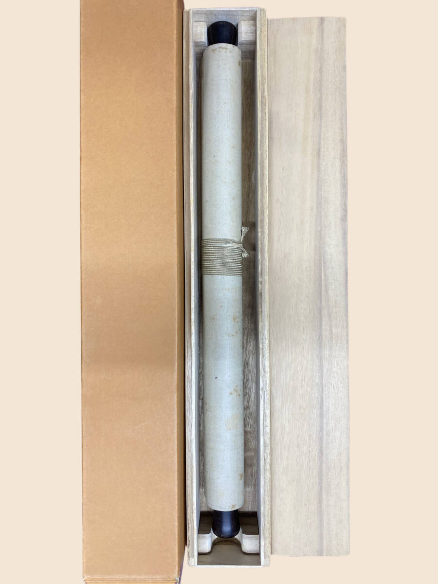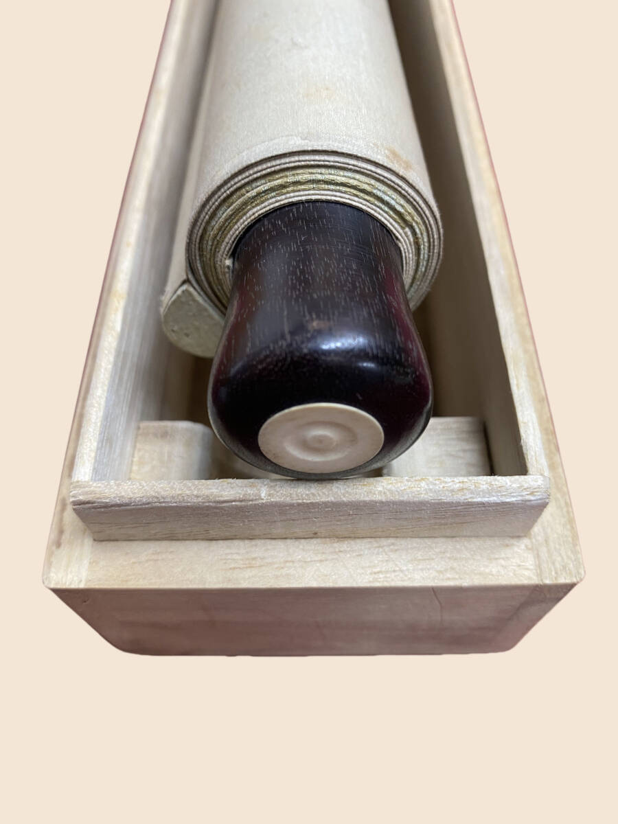 掛軸の軸先ですが、配送中の振動・気温・経年劣化等で外れてしまうことがあります。軸先の外れは、返品の対象にはなりません。大変お手数ですが、お客様ご自身での修復をお願い致します。