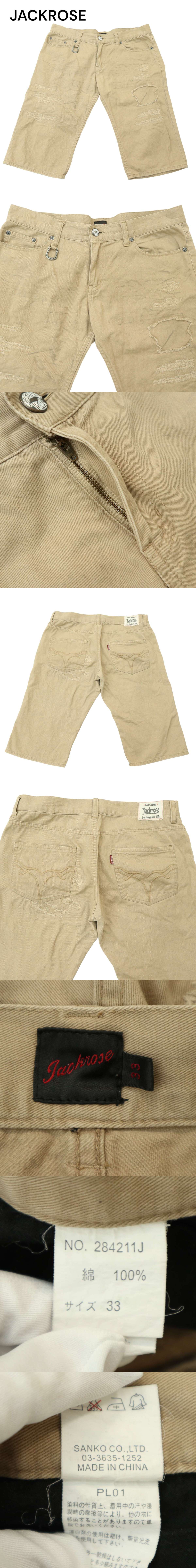 JACKROSE ジャックローズ 春夏 クラッシュ&リペア加工★ ショート デニム パンツ ジーンズ Sz.33 メンズ 收藏