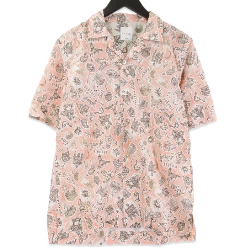 Paul Smith ポールスミス 半袖アロハシャツ スーベニア 153301 905U 総柄 オープンカラー ピンク S 71013105 收藏
