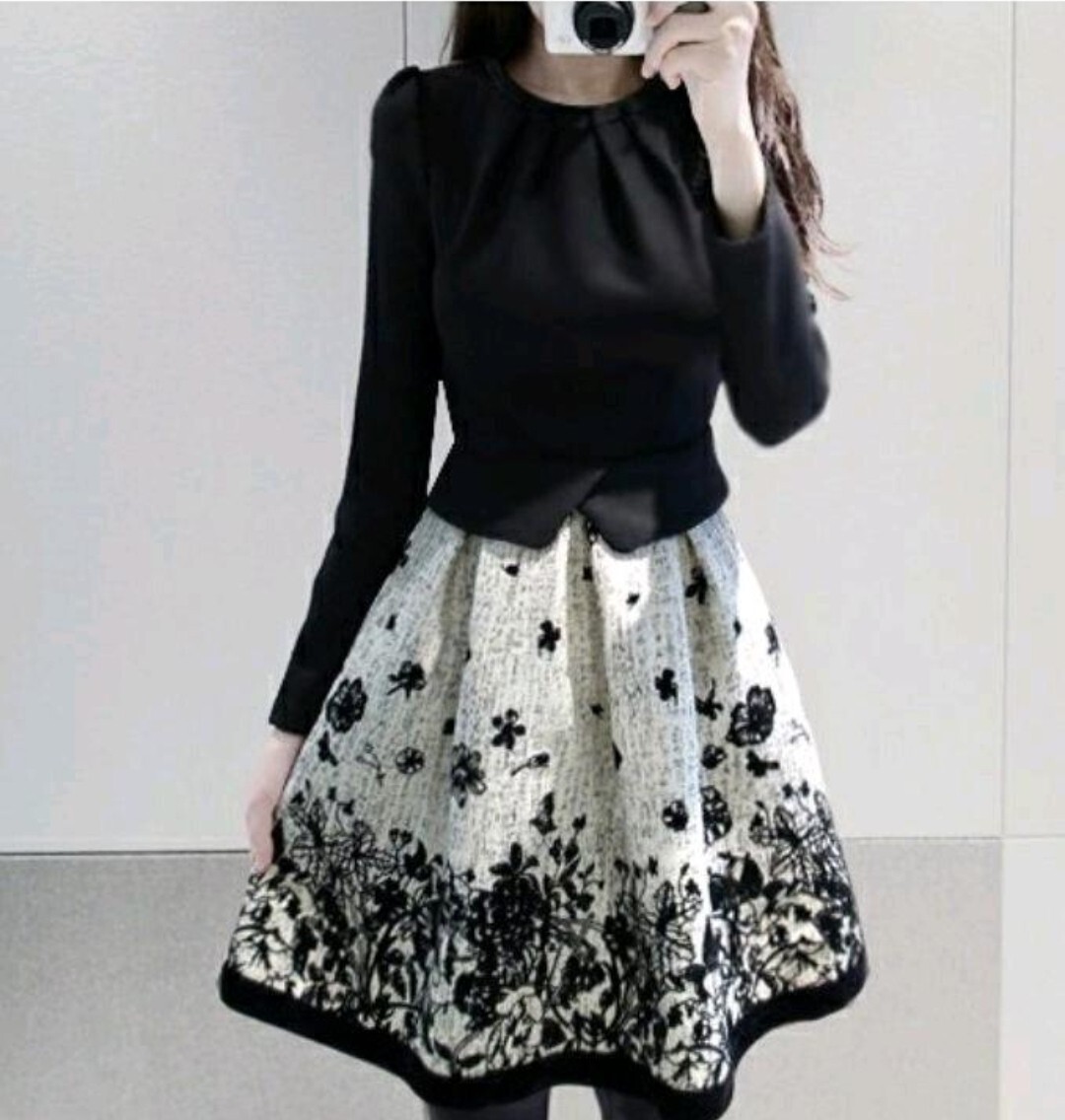【新品】レディースラウンドネック花柄デートワンピース ワンピース XL 收藏