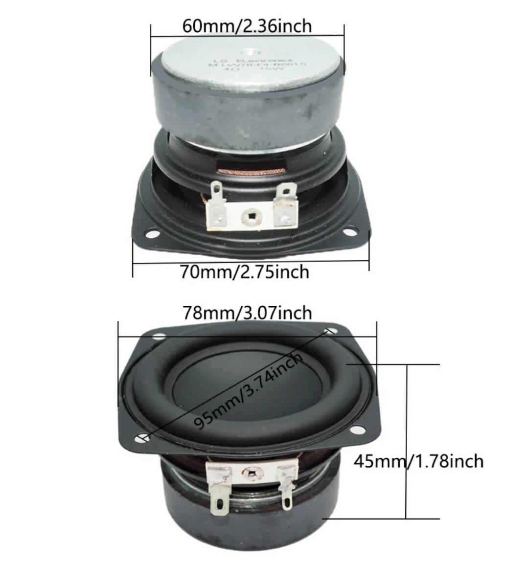 3インチ 78mm スピーカーユニット ウーハー サブウーファー スクエアフレーム 2個セット 4Ω 定格15W 最大30W