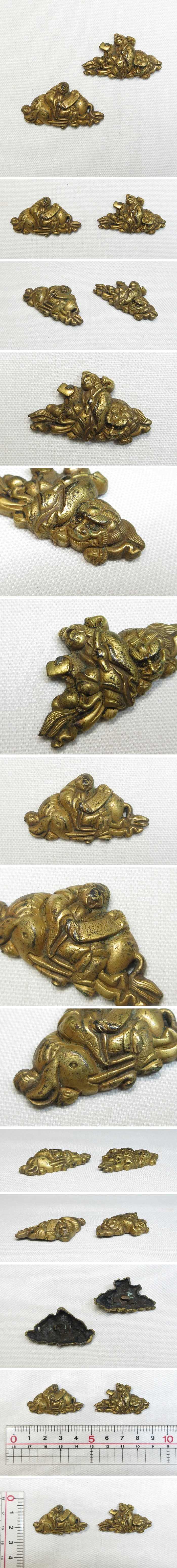 【B0420b】武具 刀装具 小道具 時代物 細密細工 銅地 鍍金 容彫 普賢文殊図 目貫 普賢菩薩 文殊菩薩 收藏