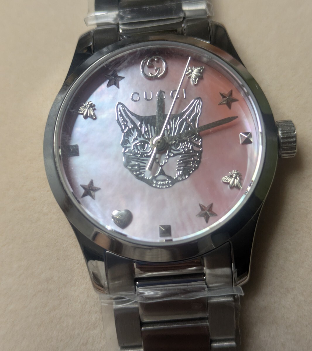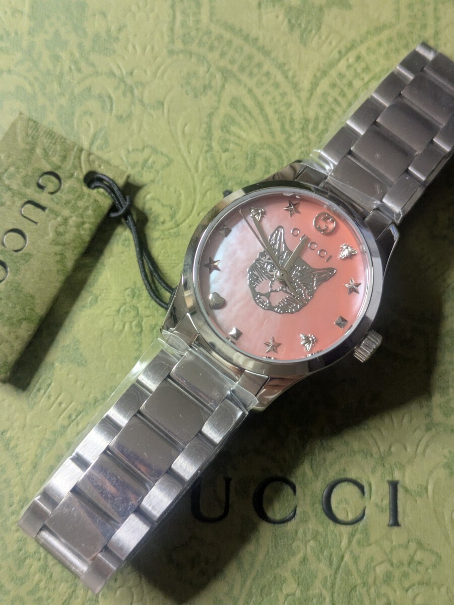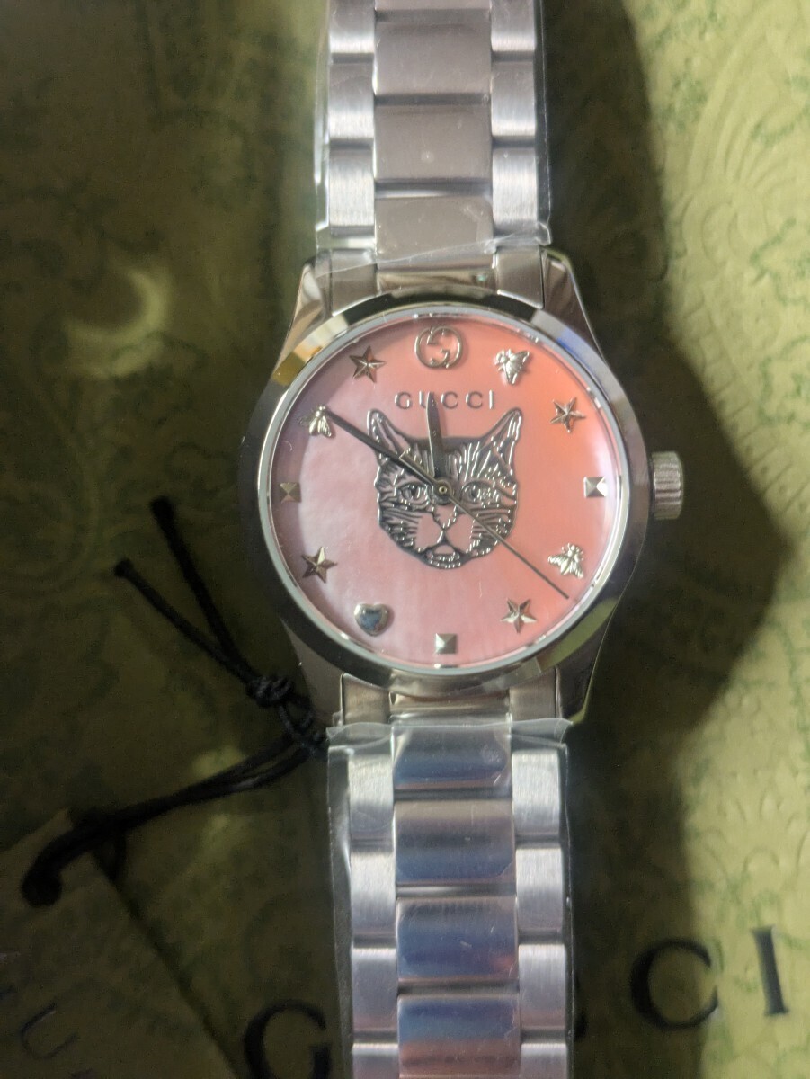 新品未使用 グッチ GUCCI Gタイムレス レディース 腕時計 猫 シェル マザーオブパール YA1265013 キャット ピンク 收藏