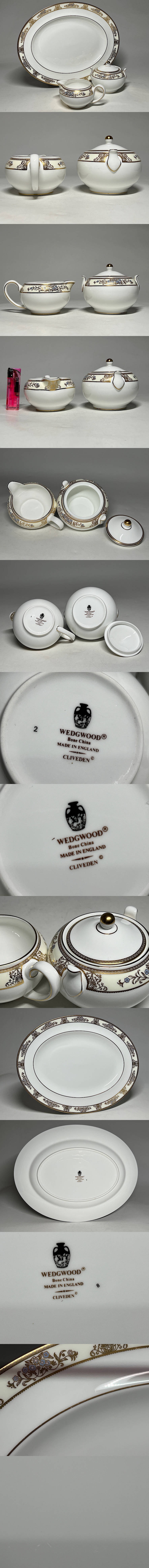 【瑞】ウェッジウッドWEDGWOOD CLIVEDEN オーバルプレート + シュガーポットとクリーマー 收藏