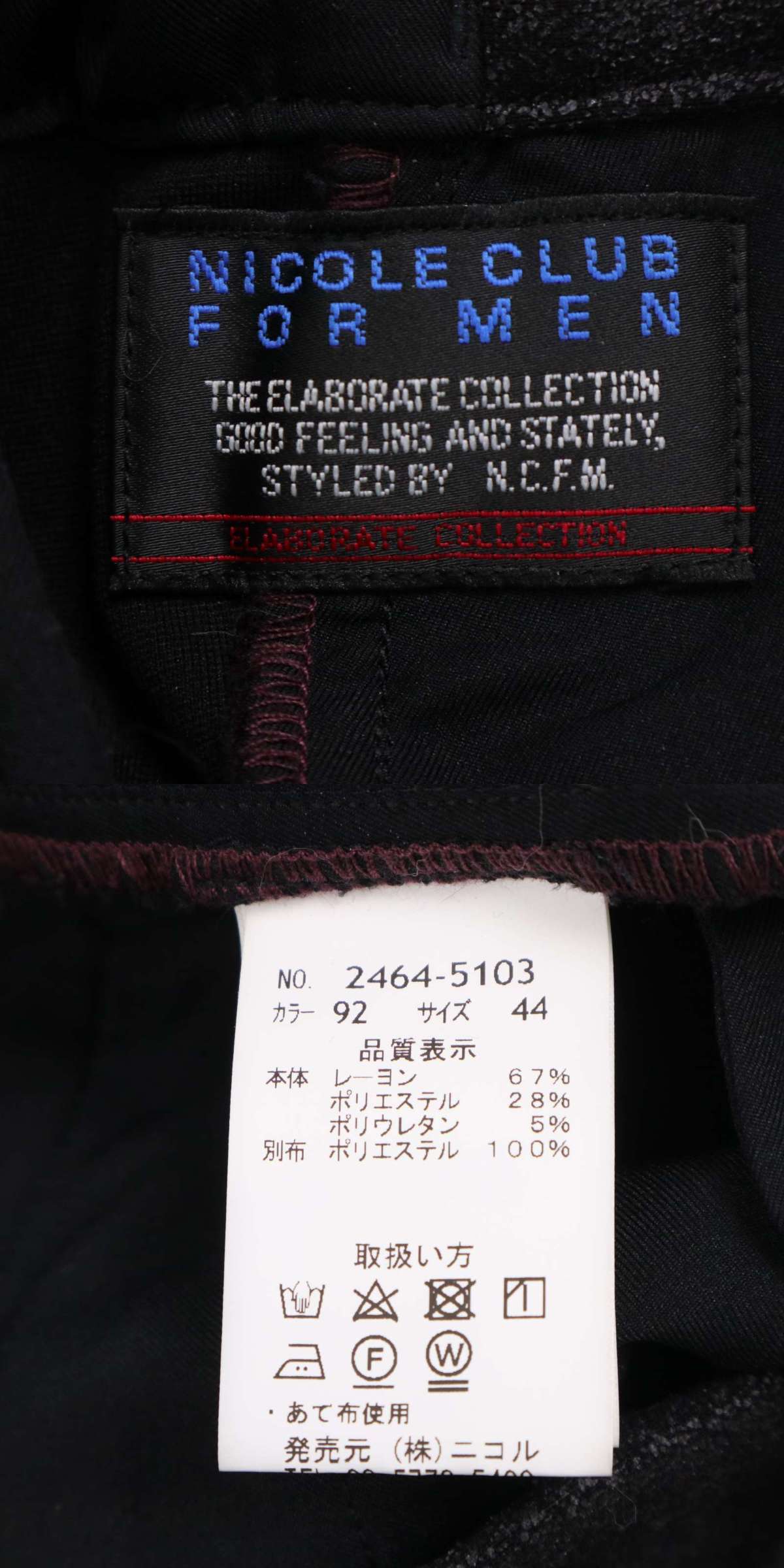22AW★ NICOLE CLUB FOR MEN ニコルクラブ フォーメン 秋冬★ TRポンチ イージー ストレッチ パンツ Sz.44 メンズ 黒 收藏