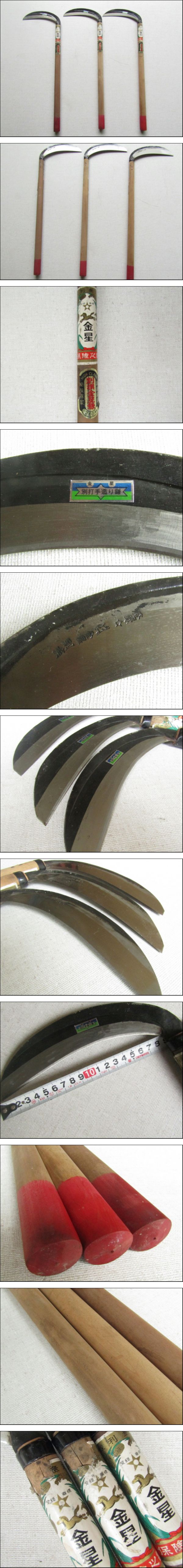 ■■(93)手打鎌 金星鎌 3本まとめて 全長61㎝ 草刈り 雑草 林業 山林 伐採 農具■■ | |||