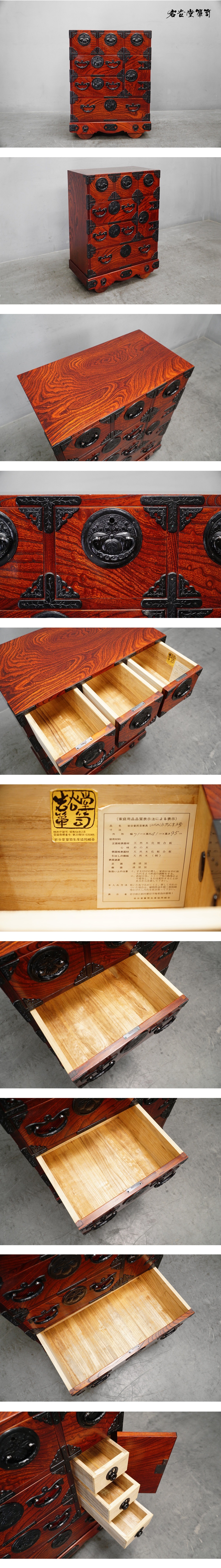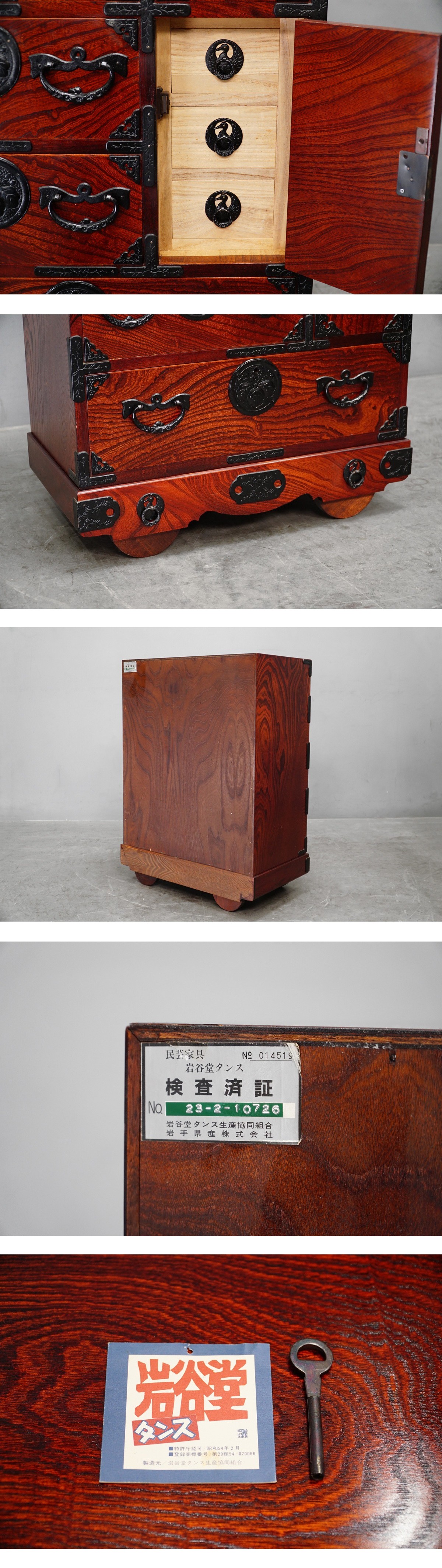 伝統工芸 岩谷堂箪笥 4段 車箪笥 みちのく小タンス3号 チェスト 欅 漆 南部鉄器 最高峰 和家具 抽斗 時代箪笥 鍵付き050924 收藏