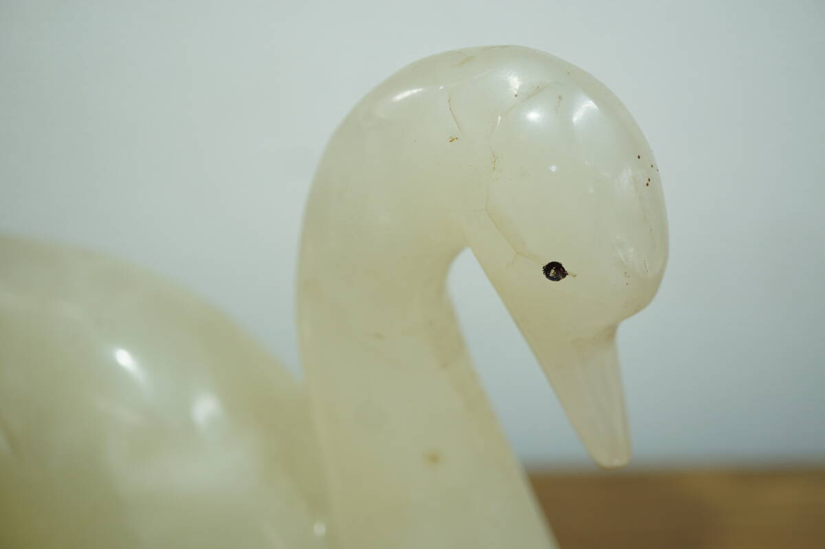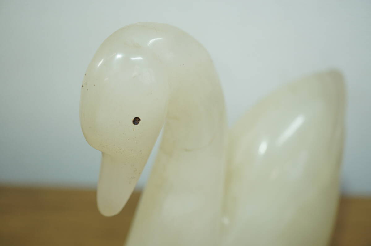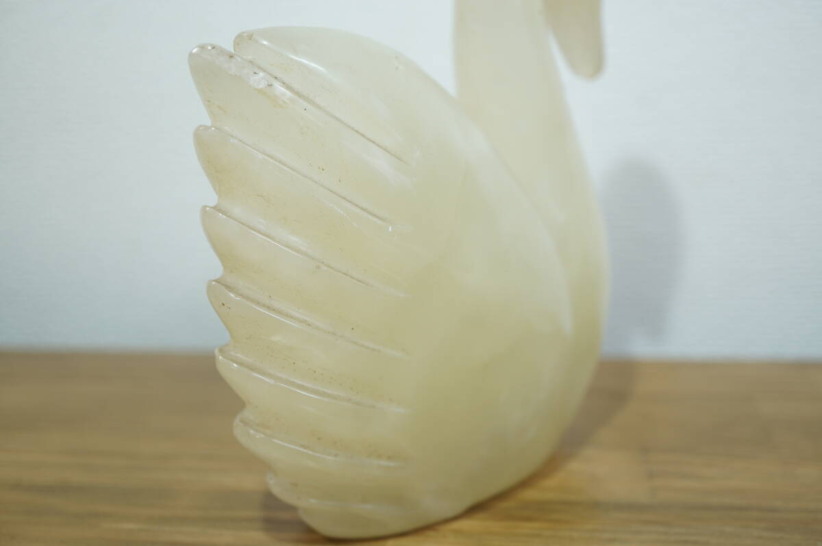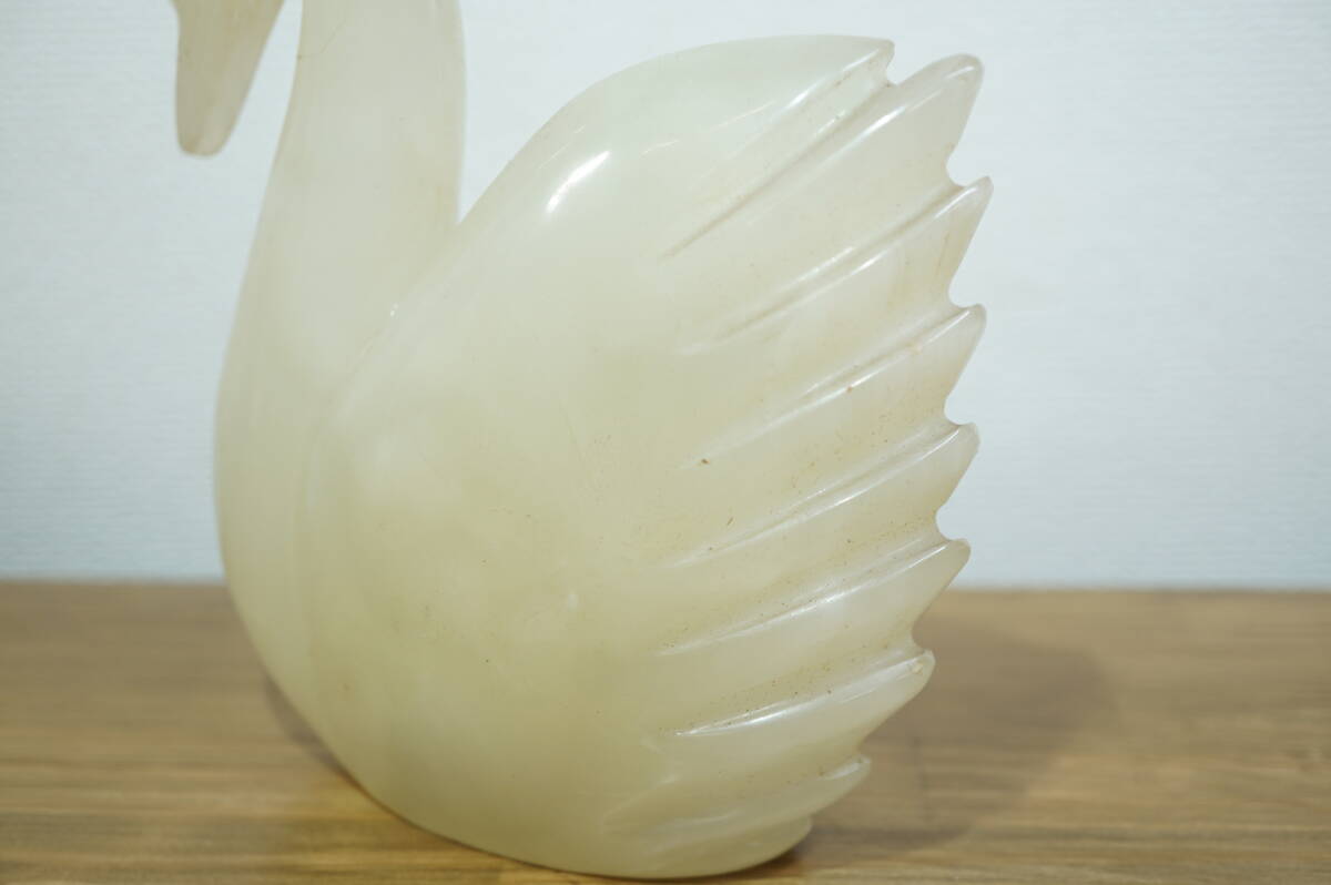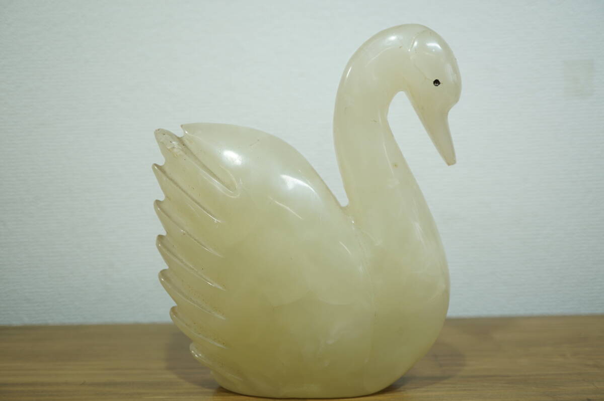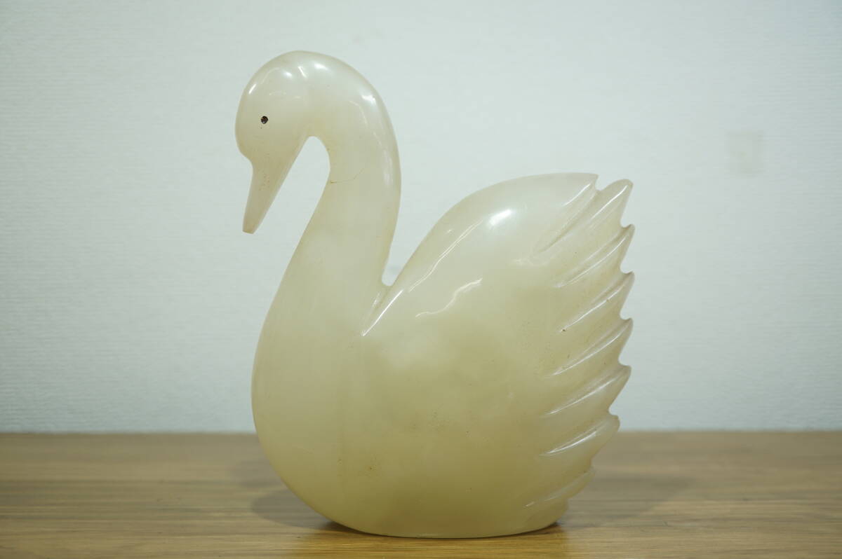 スワン 白鳥 置物 石材 オニキス 高さ約15.5cm×横13.5cm×幅5.5cm 保管品 オブジェ 收藏