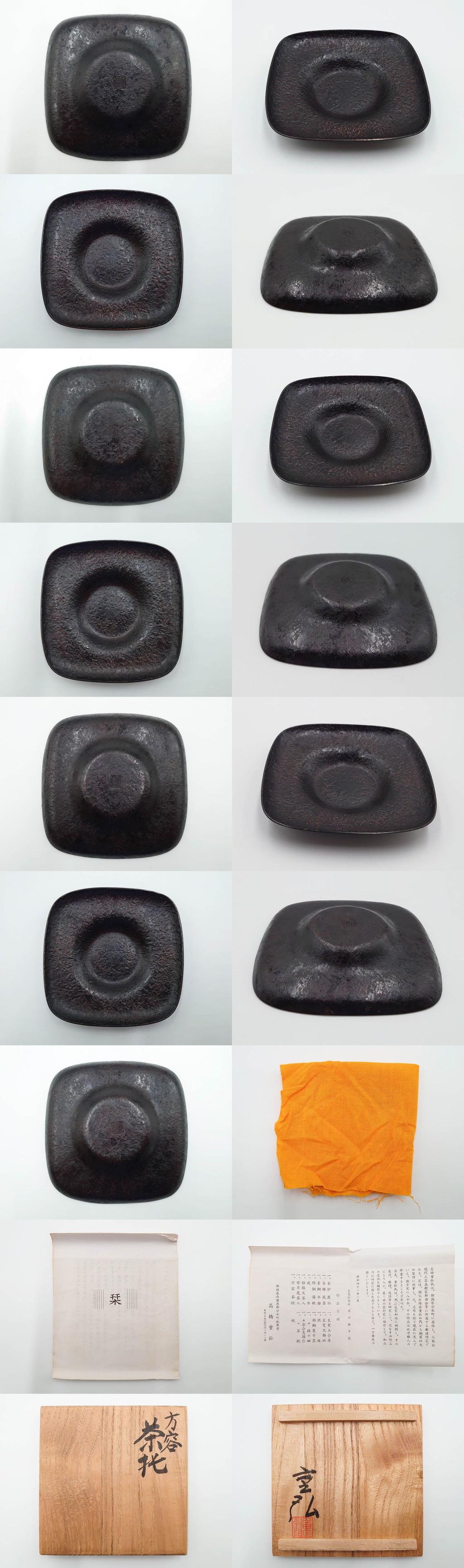 R-084503 高橋重弘 総重量 約325g 深い味わいを感じる方容茶托5客セット(五客揃、銅製、茶道具、煎茶道具、在銘有) 收藏