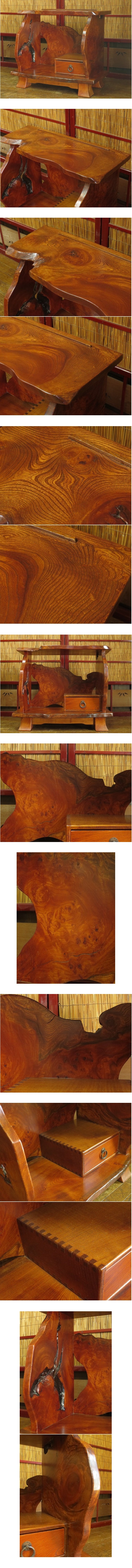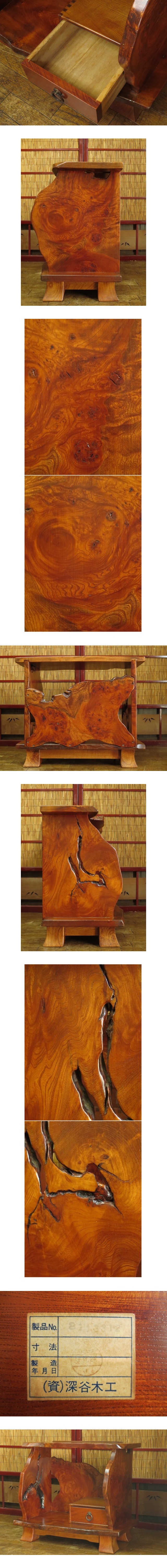 逸品 深谷木工 天然木 総欅 ケヤキ 無垢材 玉杢 民芸 飾り棚/煎茶棚/茶棚/置床/箪笥/小箪笥/手元箪笥/茶道具/抽斗/和家具 收藏
