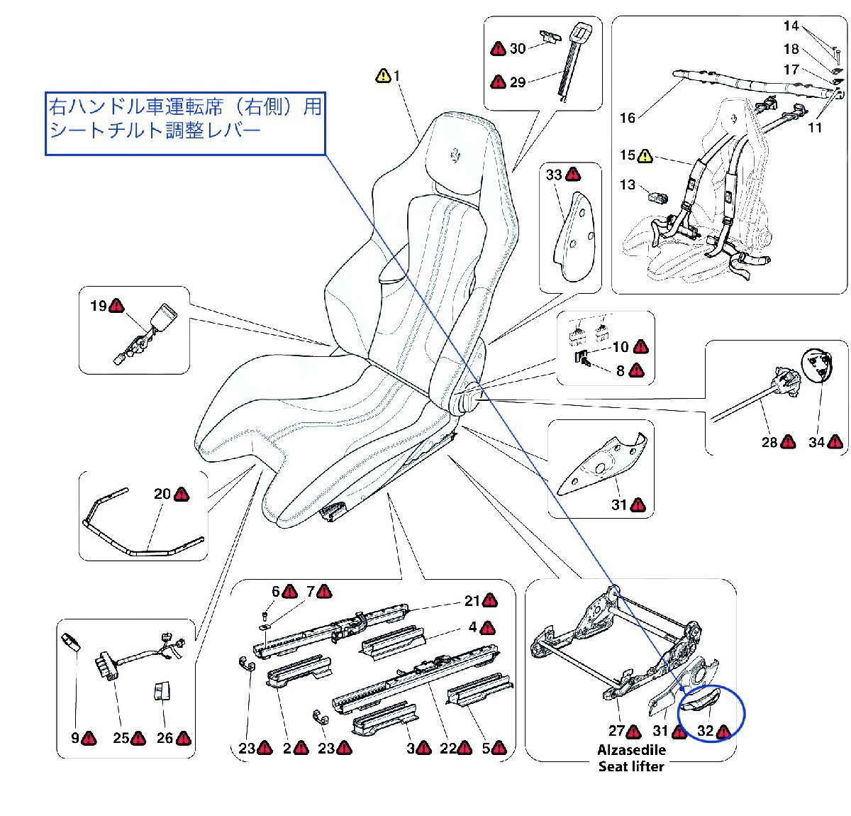 商品説明 | フェラーリ 812 Superfast 右ハンドル車用 運転席チルト調整レバー です。 左ハンドル車には使用できません。 |