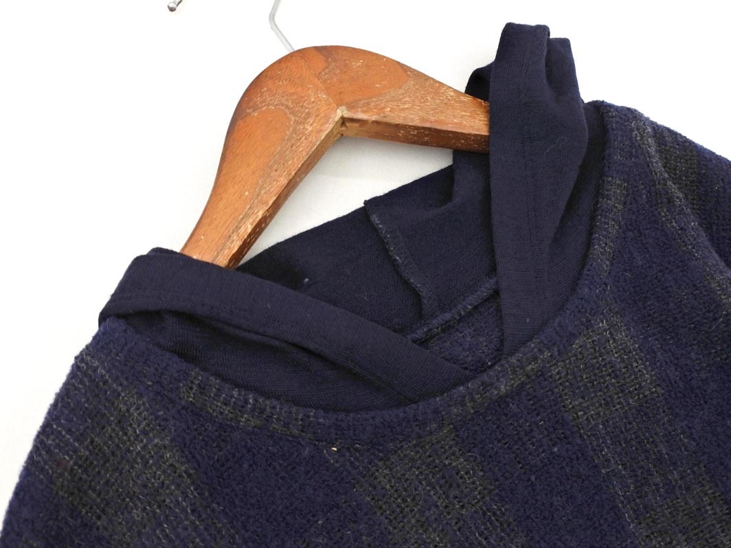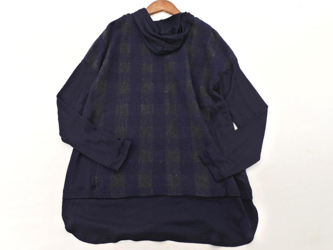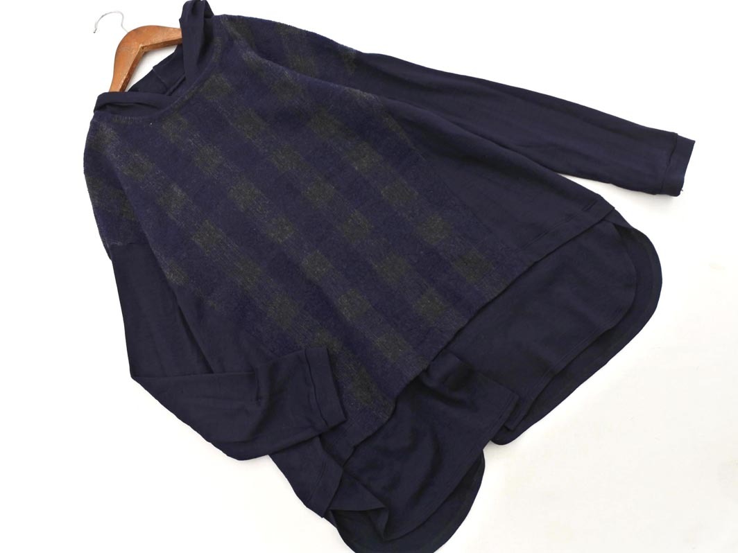 COMME CA DU MODE コム サ デ モード ウール混 フェイクレイヤード フード ニット セーター size11/紺 ◇■ ☆ fjb6 レディース 收藏