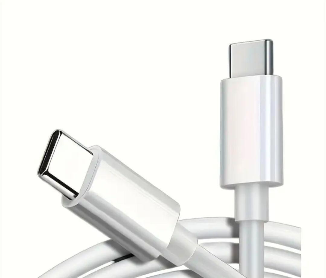 USB-C端子を持つホワイトの充電ケーブル、デュアルコネクタで便利。