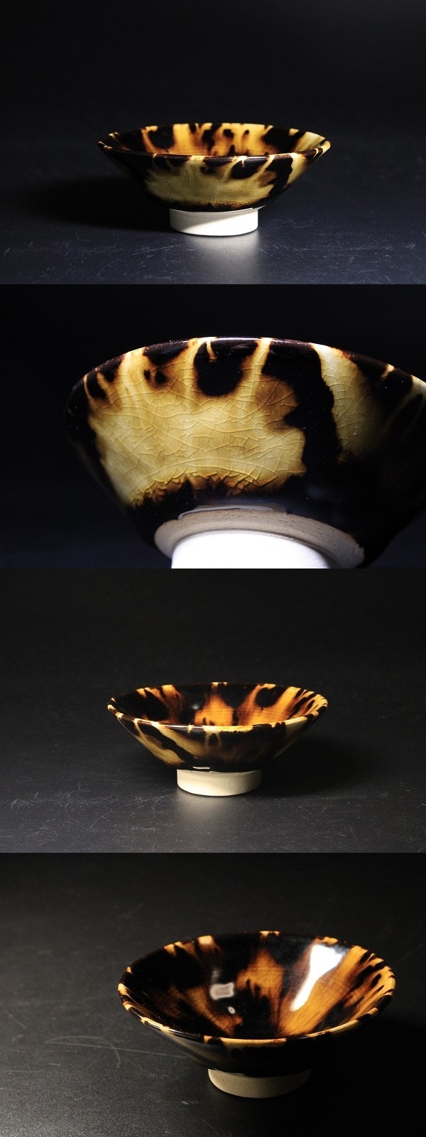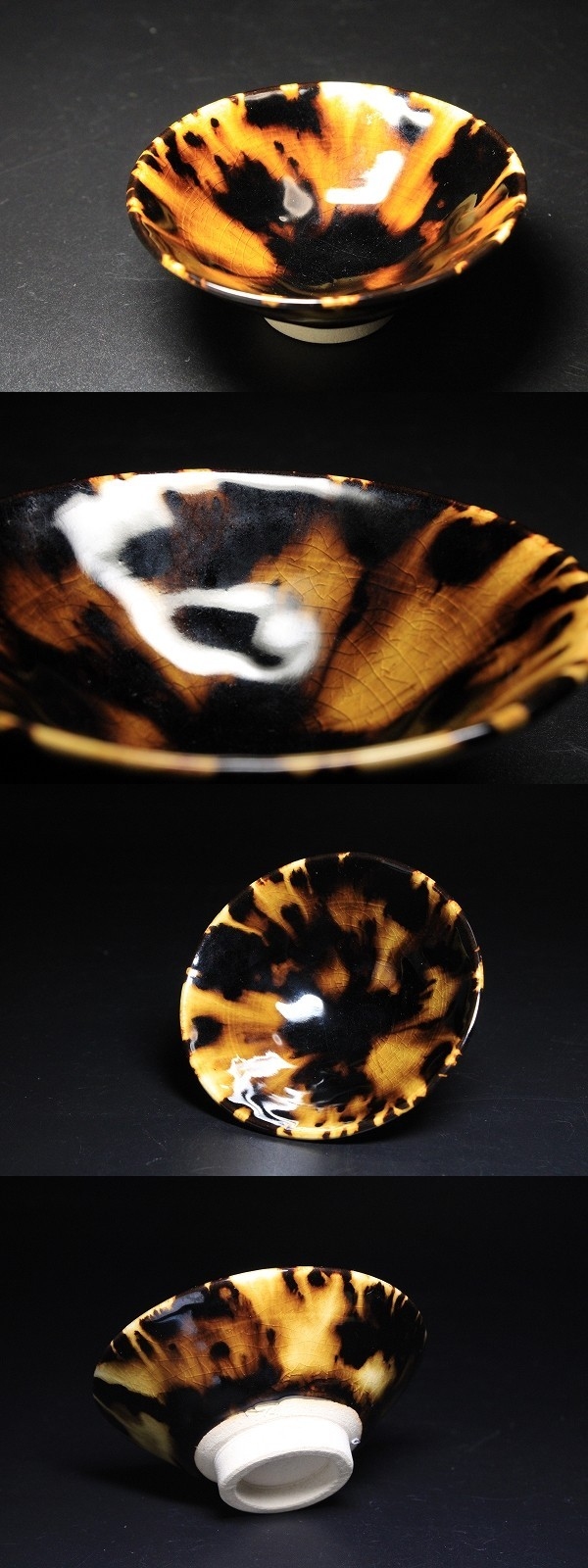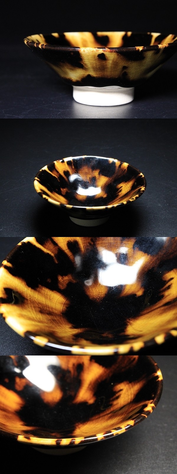 □■常滑盆栽鉢名工!清水燿山(正和) べっ甲釉 ぐいのみ 天目型 酒器 盃 日本酒 煎茶碗にも■□懐石 料亭 割烹 收藏