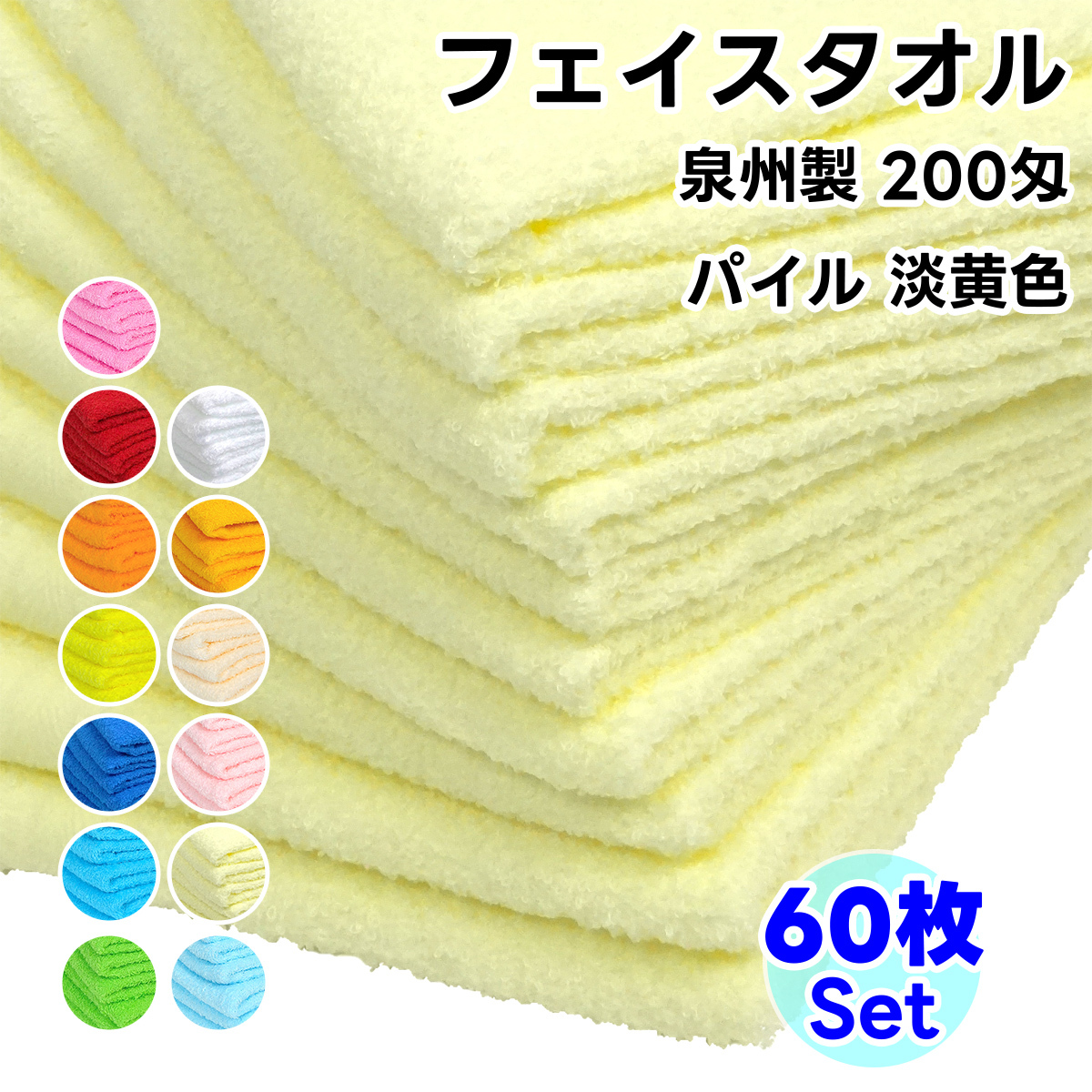 タオル フェイスタオル ソフトタオル 淡黄色 60枚セット 200匁 総パイル 日本製 まとめ買い 泉州製 薄手 無地 綿100% 收藏