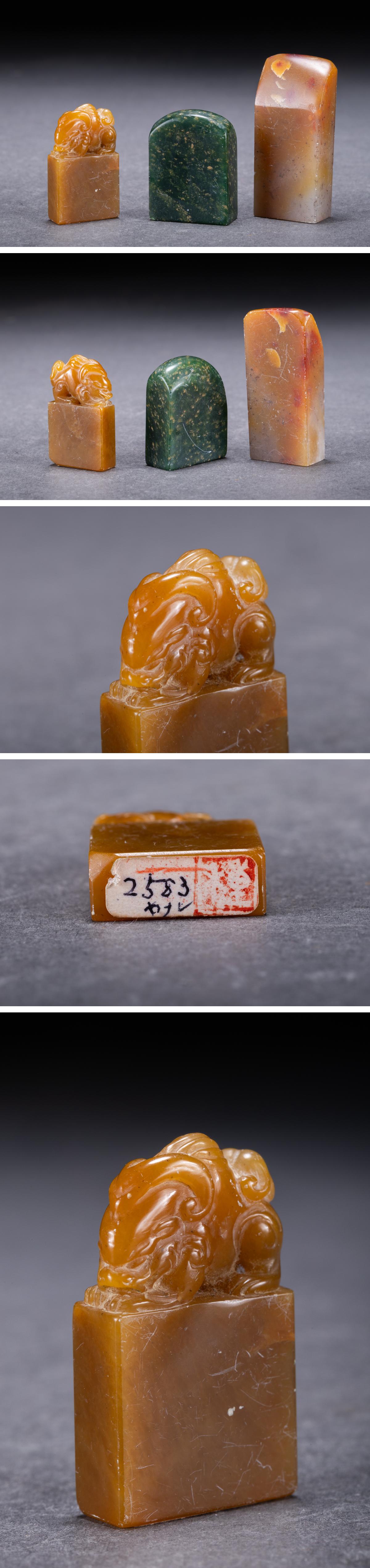 【華】時代舊藏 時代物 中国伝来 寿山田黄石・芙蓉石 印章三点 時代物 古美術 骨董品A25070314-QI