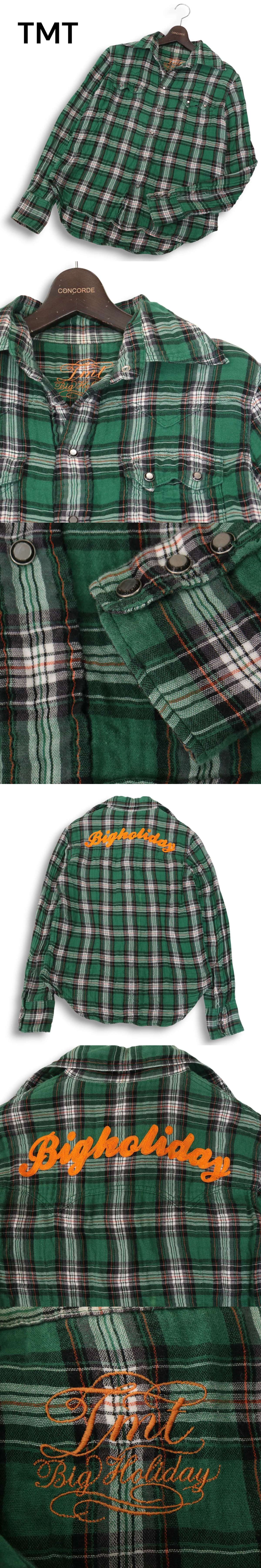 TMT ティーエムティー ビッグホリデー 通年 ロゴ刺繍★ 長袖 ダブルガーゼ ウエスタン チェック シャツ Sz.S メンズ 日本製 收藏