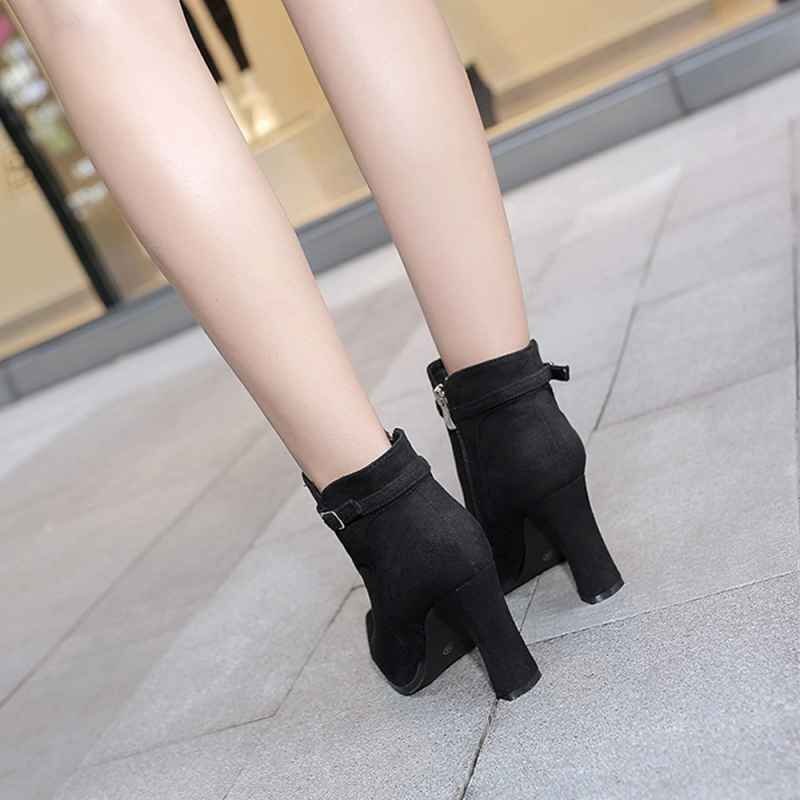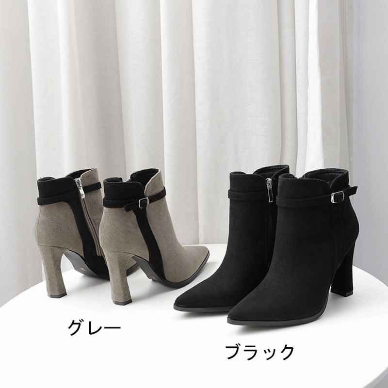 ショートブーツ レディース スエードブーティ 裏起毛 ポインテッドトゥ 22.0cm(34) グレー 收藏