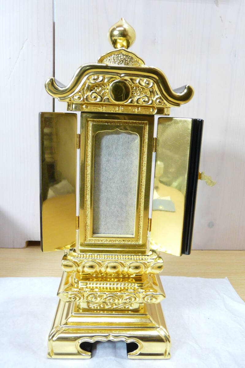 【仏具★未使用品】雲二重回出 位牌 三方金◆高級 仏具◆塗り 金箔張◆H:26cm◆別上塗総木製◆黒塗板1枚・白木板9枚つき◆天然杢◆② 收藏