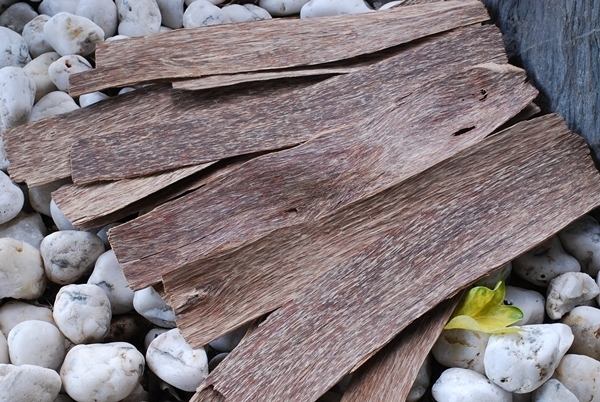 栽培の沈香木(アガウッド)の中で、沈香油が回った表皮のみを薄く剥ぎ取った部分となります。