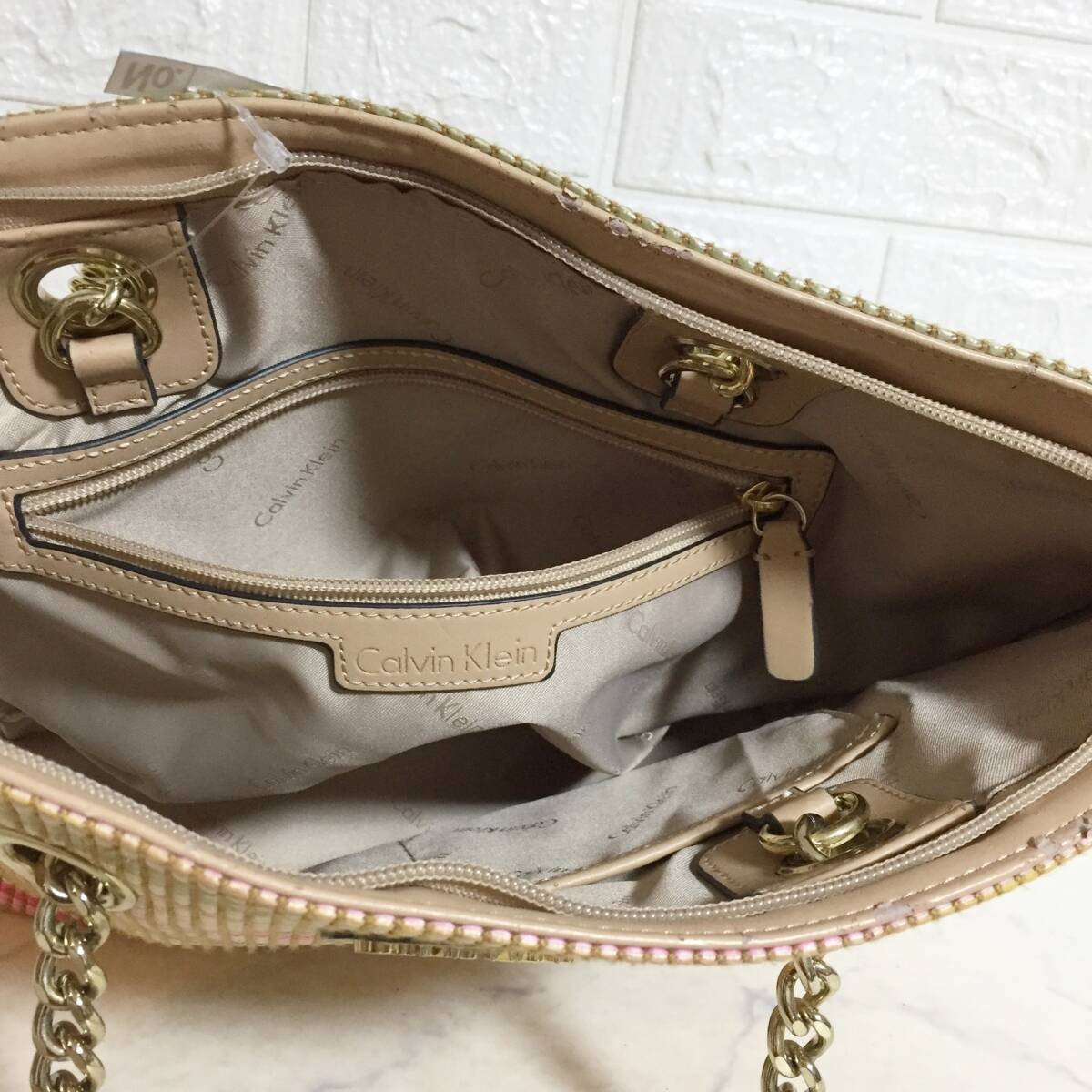 no37537 Calvin Klein カルバンクライン ストロー 編み込み 籠 肩掛けショルダー トート バッグ 收藏