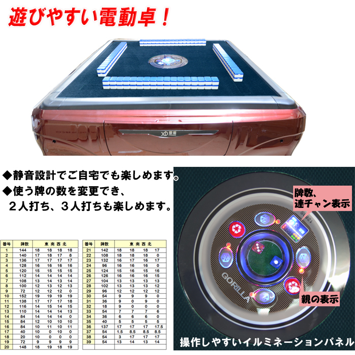 UVC紫外線機能内蔵 全自動麻雀卓 全自動電動マージャン卓 33ミリ牌×2セット+赤牌点棒 静音タイプ 日本語説明書一年保証Gorilla(ゴリラ) 收藏