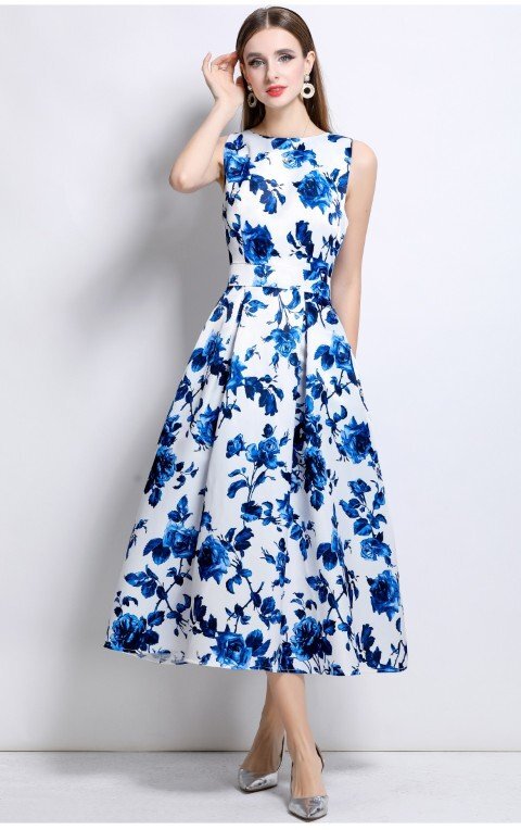 ロングワンピース ノースリーブ 袖なし 花柄 ドレス 二次会 披露宴 懇親会 パーティー レディース 2XL ブルー 收藏
