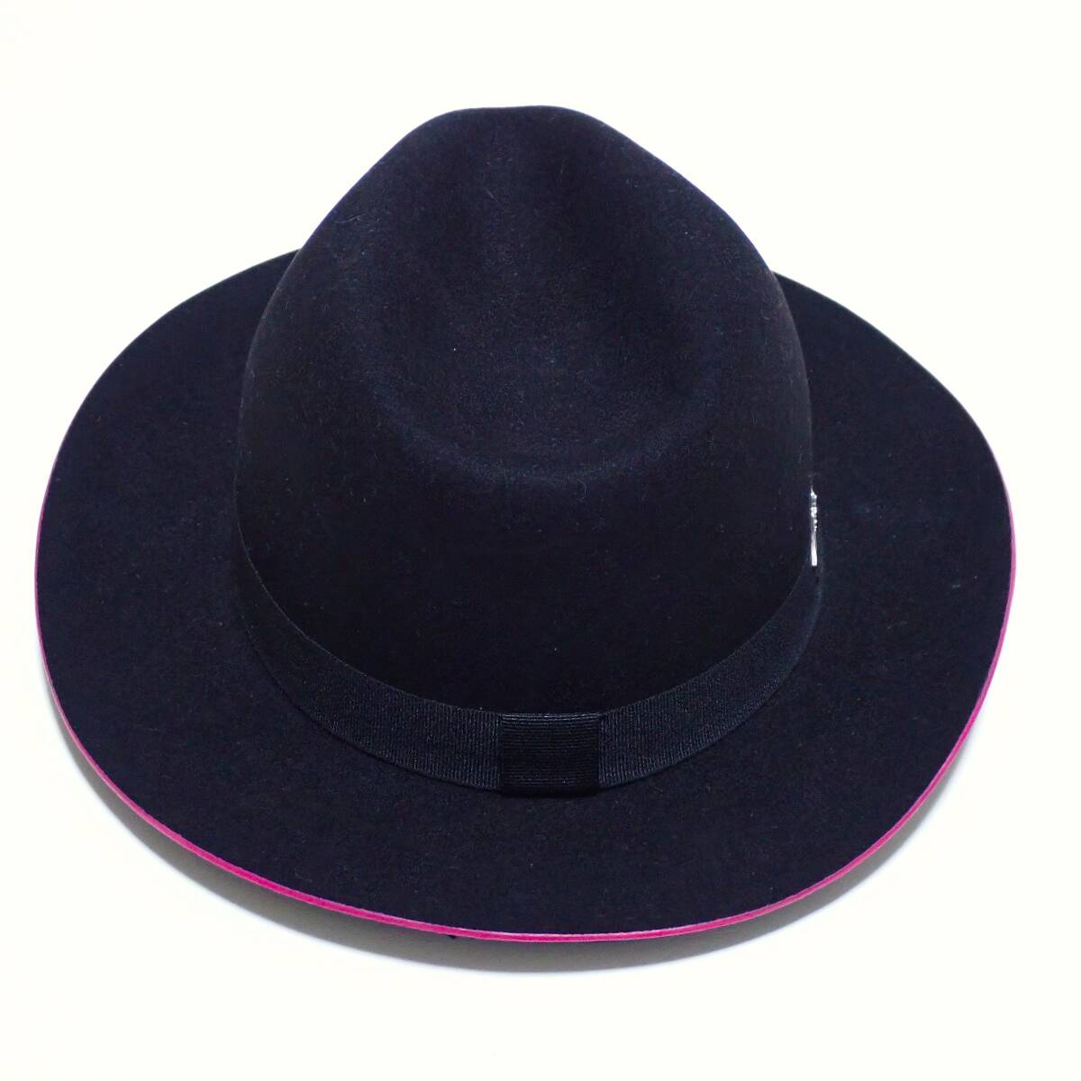 【未使用/タグ付き】GIORGIO ARMANI ジョルジオアルマーニ フェドラハット ラビットファー57 黒 中折れハット ソフト帽 帽子 收藏