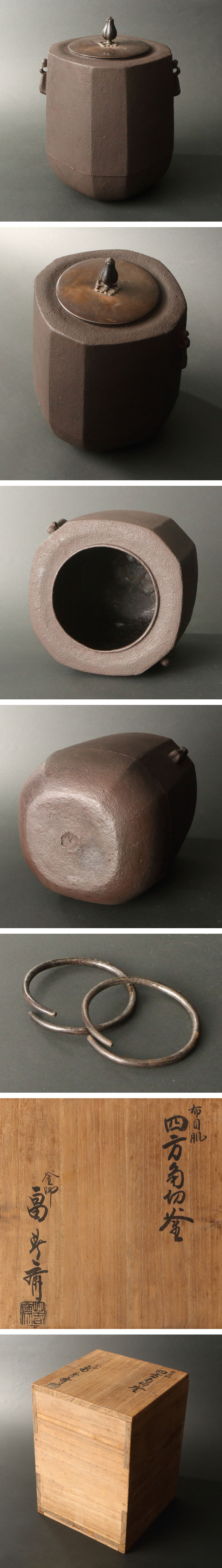 委託HK◇畠春斎 布目肌四方角切釜 共箱(茶道具 金属工芸 金工 茶釜 京釜 天猫 天明 芦屋 風炉 炉 釜鐶付 釜鐶 炭点前 茶事 茶席 茶の湯 ) 收藏