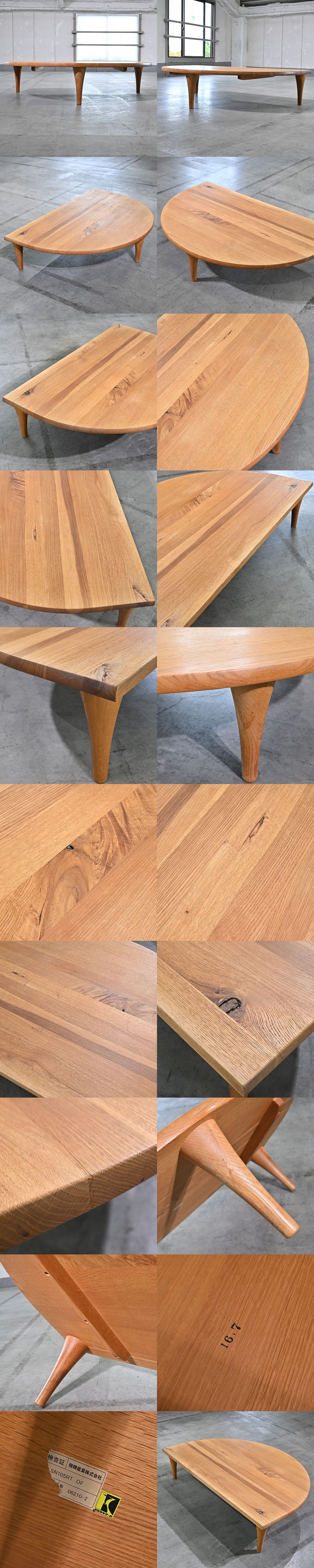 飛騨産業 21万「森のことば」半円形リビングテーブル センター オーク無垢材 ナラ ロー 佐々木敏光 机 和 ジャパンディ HIDA キツツキ 收藏