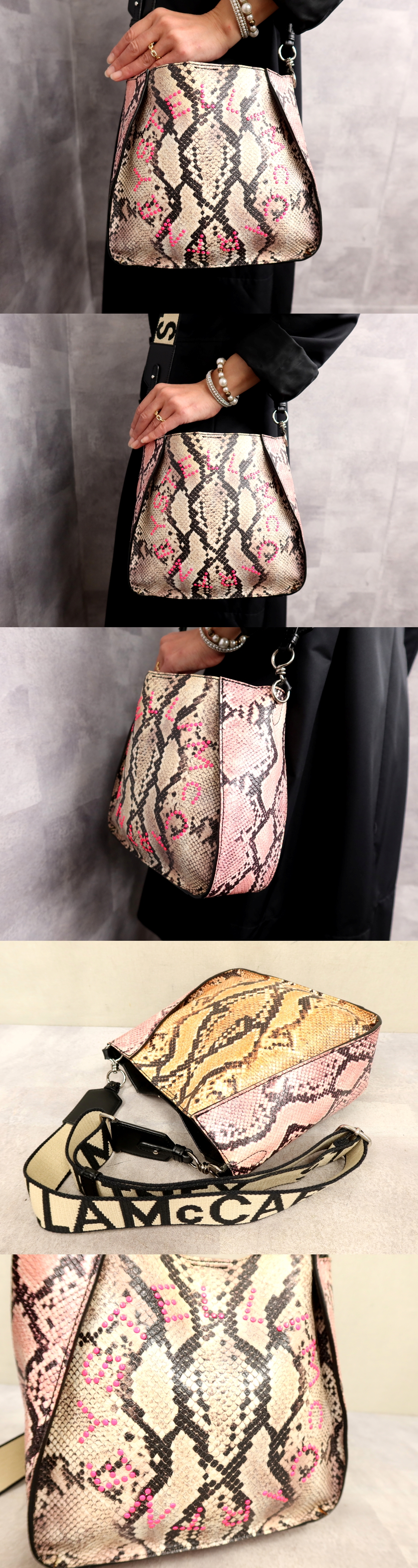 ●超美品●ステラ マッカートニー●サークルロゴ●パイソン 型押し レザー 本革●ショルダー バッグ●ベージュ ピンク 茶●SV金具●Js62158 收藏