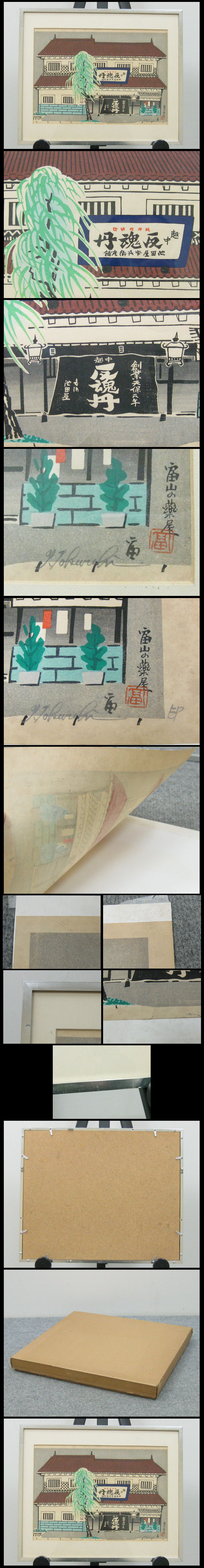 【心庵】額装 徳力富吉郎「越中反魂丹池田屋」木版画 紙箱付 A1287 收藏