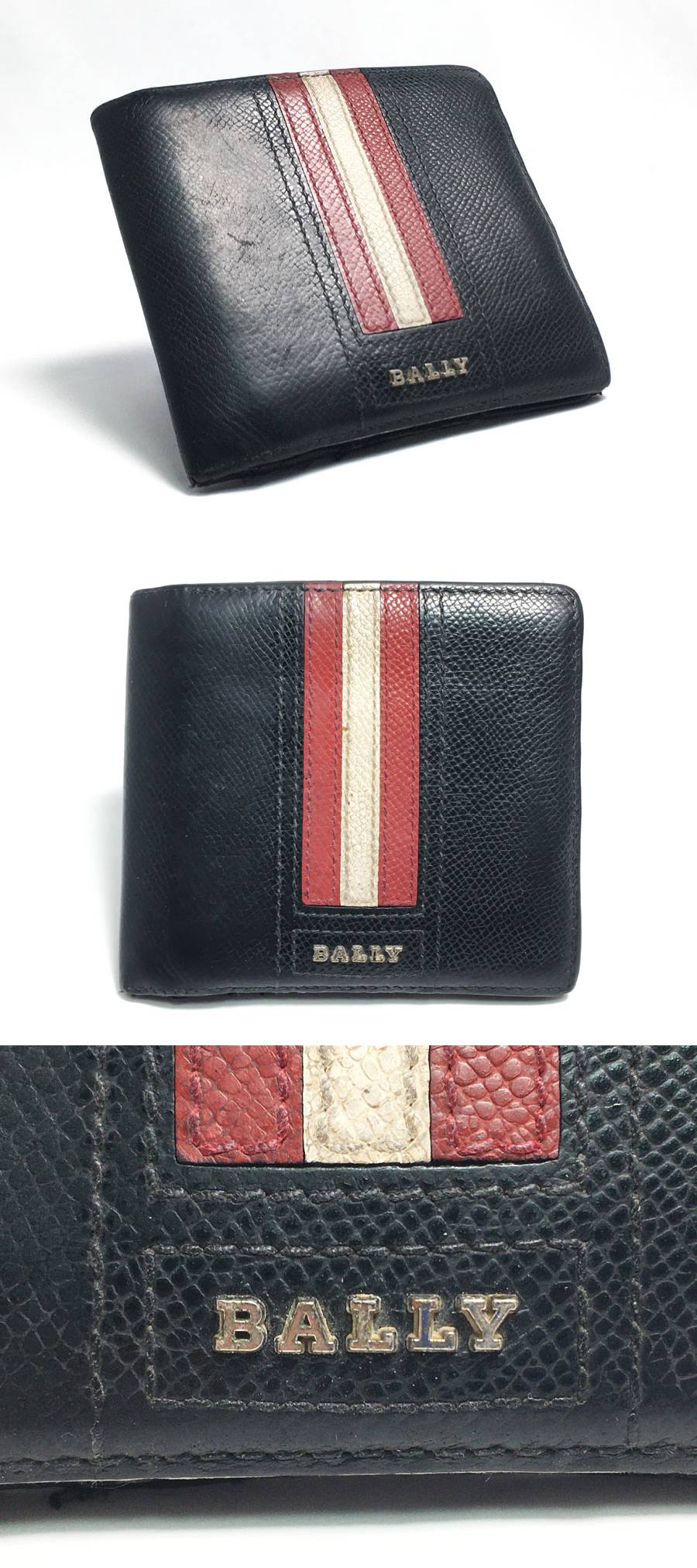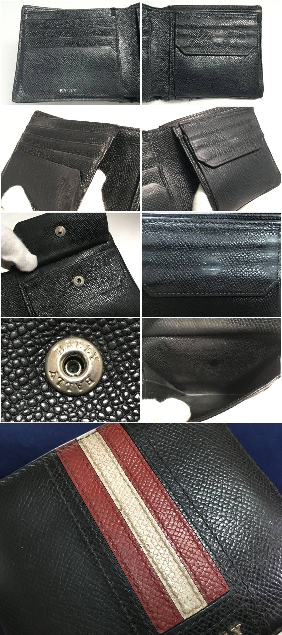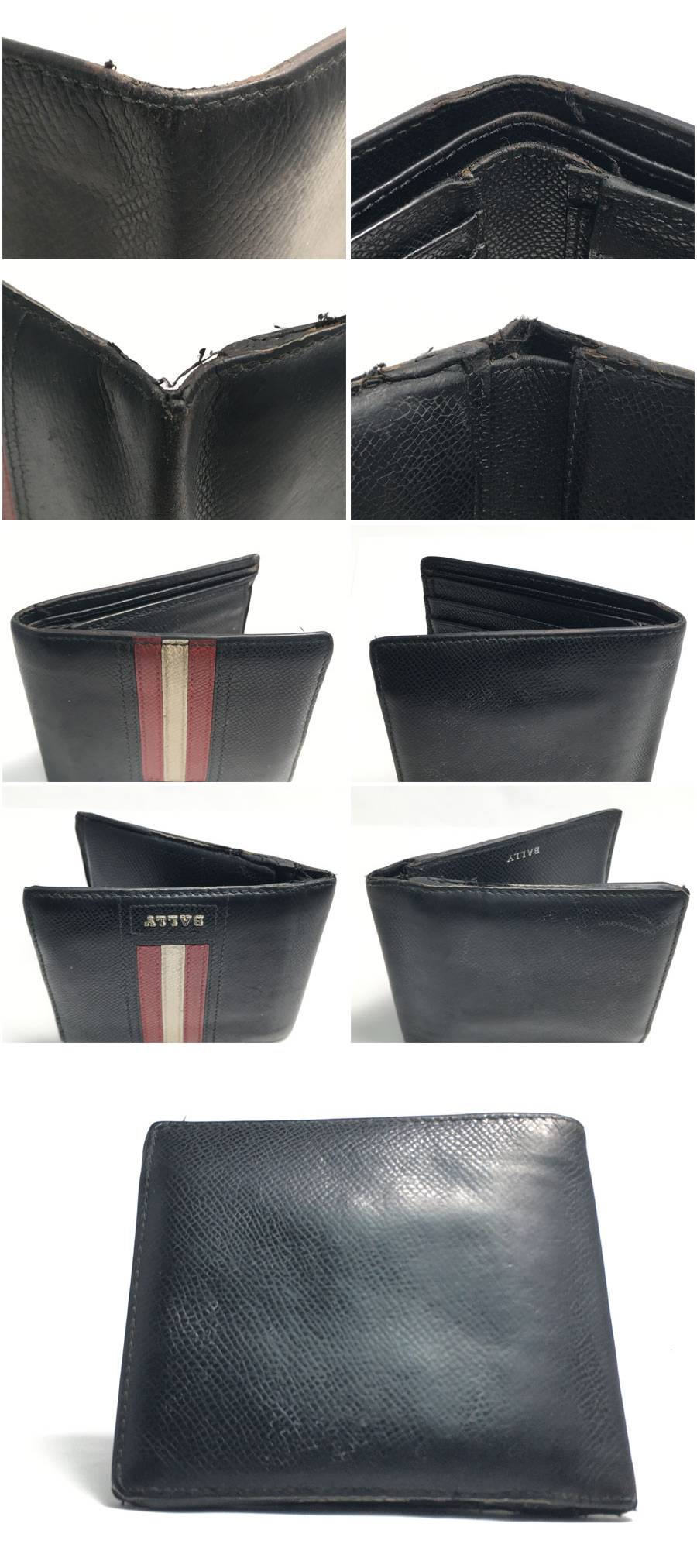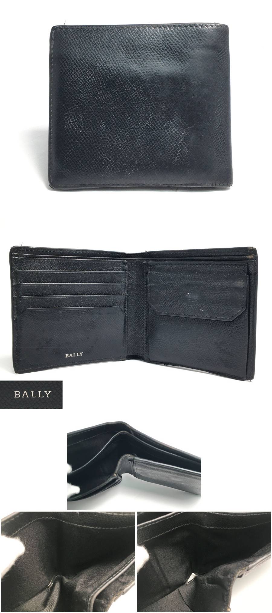 ◆BALLY バリー 二つ折り財布 レザー 約10×11cm シボ革 ブラック系 小銭入れ有り 財布 收藏