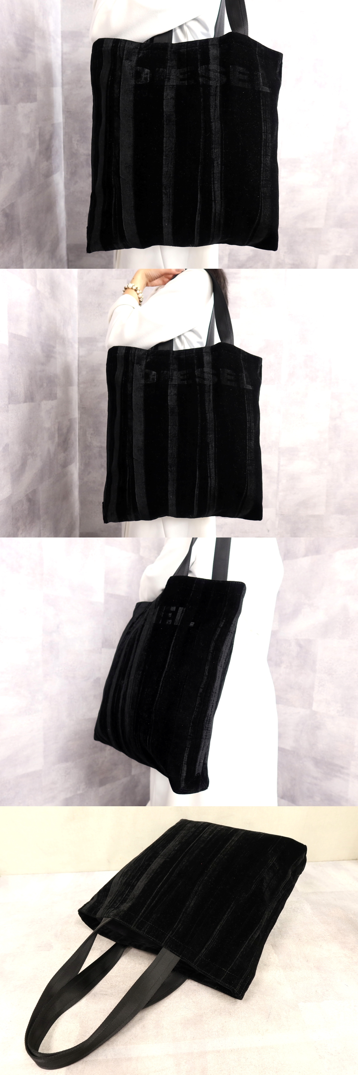 ●超美品●DIESEL ディーゼル●ロゴ型押し●ベロア●トート バッグ●黒●肩掛け●A4 書類●収納 かばん●Js62392 收藏