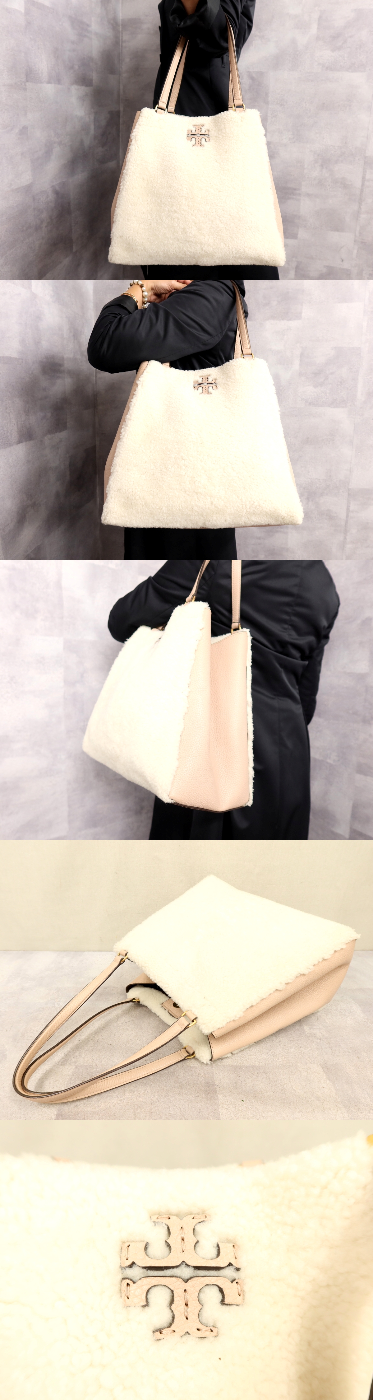 ●超美品●TORY BURCH トリーバーチ●マックグロー●ムートン カーフ レザー 本革●トート バッグ●ピンク系 ホワイト●G金具●A4●Js62370 收藏