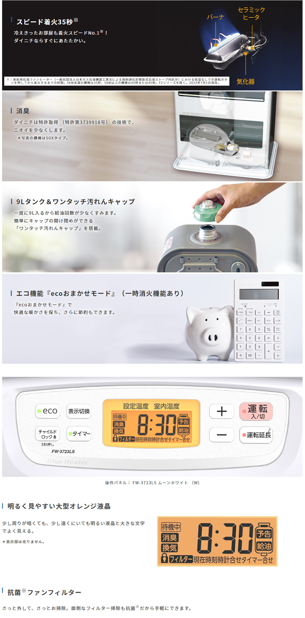 1円~未使用品■2023年製 ファンヒーター ダイニチ FW-3723LS ブルーヒーター ムーンホワイト 木造10畳 コンクリ13畳 石油 スピード着火 9L 收藏