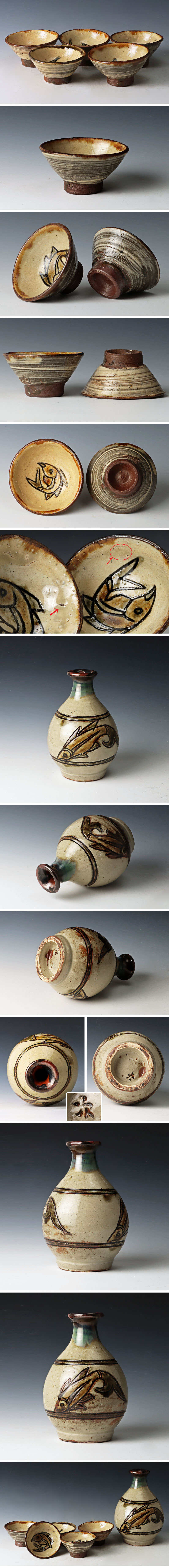 | 【古美味】人間国宝 金城次郎 壺屋焼魚文酒器 茶道具 保証品 |