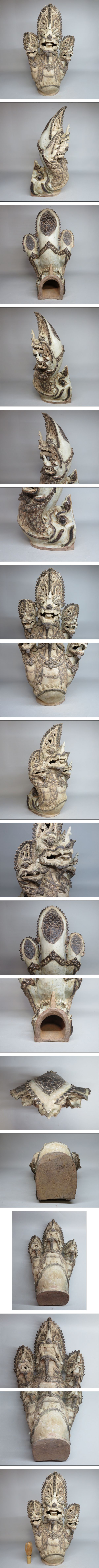 | 「都内コレクター所蔵品」タイ古陶磁 スコータイ時代 陶器製 白濁褐釉 ノラシンガ像 三頭像 置物 スワンカローク◆発掘品 | ||