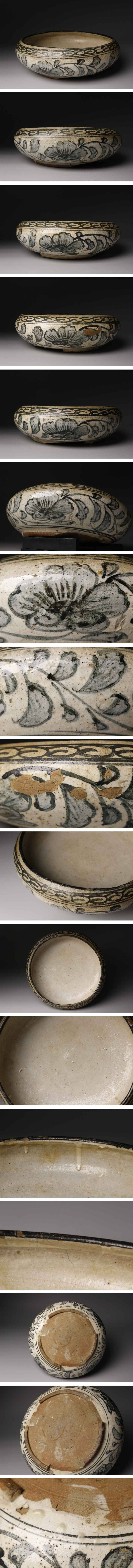 【LIG】時代安南染付 花唐草文鉢 水盤 時代古玩 2511115 收藏