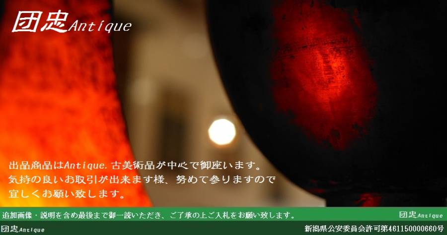 ◇◆◇出品商品は全て売り切り取引を心がけていますが、終了前迄に直接取り引きなどで成約があった場合、又は仕入れ価格と大幅にかけ離れている場合、途中で商品の取り消しを行う事が御座います。 ◆原則真作保証・真筆保証と明記してあるものは、真作保証・真筆保証でございます。安心してご入札下さい。万が一その作家の公式な鑑定機関を経て贋物と判断された物に関しましては送料当社負担でご返品いただき、落札代金、振込手数料及び送料の全額をご返金いたします。(保証期間はご落札の日より100日間とさせていただきます) 鑑定に掛りました費用は除きます。 ◆肉筆保証と明記してある物は詳細不明品ないし模写製品とお考え下さい。 ◆原則として作品詳細に大きな誤りがある場合を除き、返品はお断りさせていただきます。 |