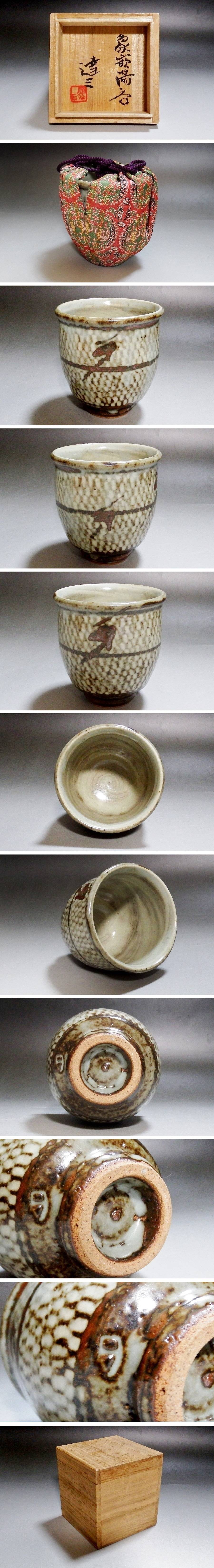 ◇◆ 島岡達三 ◇◆ 大正8年-平成19年(1919-2007)88歳東京都出身。出自:父は組紐師島岡米吉。東京工業大学窯業科卒。戦後、濱田庄司に入門。昭和29年(1954)、益子町に築窯。昭和55年(1980)、栃木県文化功労章受章。平成8年(1996)、国の重要無形文化財保持者(縄文象嵌)に認定。平成11年(1999)、勲四等旭日小綬章受章。世界各国で指導、講師、個展を行う。 ◇◆真作保証 ◆状態◆ 無傷で御座います。 ◆サイズ◆ 作品サイズ約 口径9.2cm 高さ9.6cm 高台5cm ◆付属◆ 仕覆袋・共箱 焼物の性質上、くっつき、釉ぬけ、窯スジ、窯へこみはご承知の上入札お願いします。 その他にも趣ある物を出品しておりますので御観覧頂けましたら幸いで御座います。 |